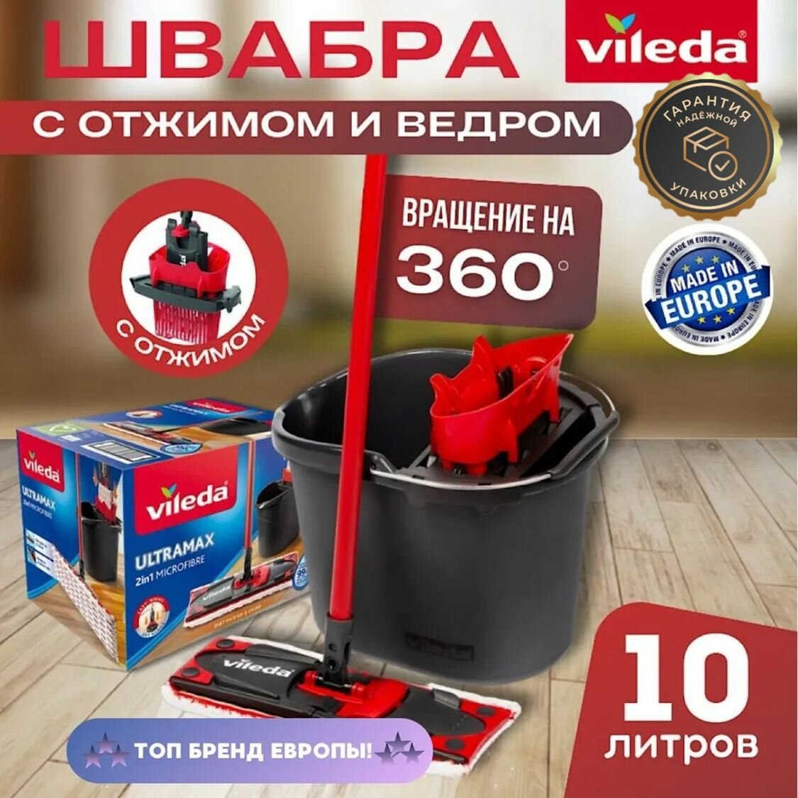 Швабра для уборки с ведром VILEDA Ultramax информация: