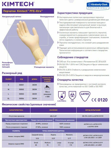 Перчатки латексные удлиненные 28 см Kimtech PFE-Xtra Gloves, цвет: бежевый, размер S, 50 шт. (25 пар) информация: