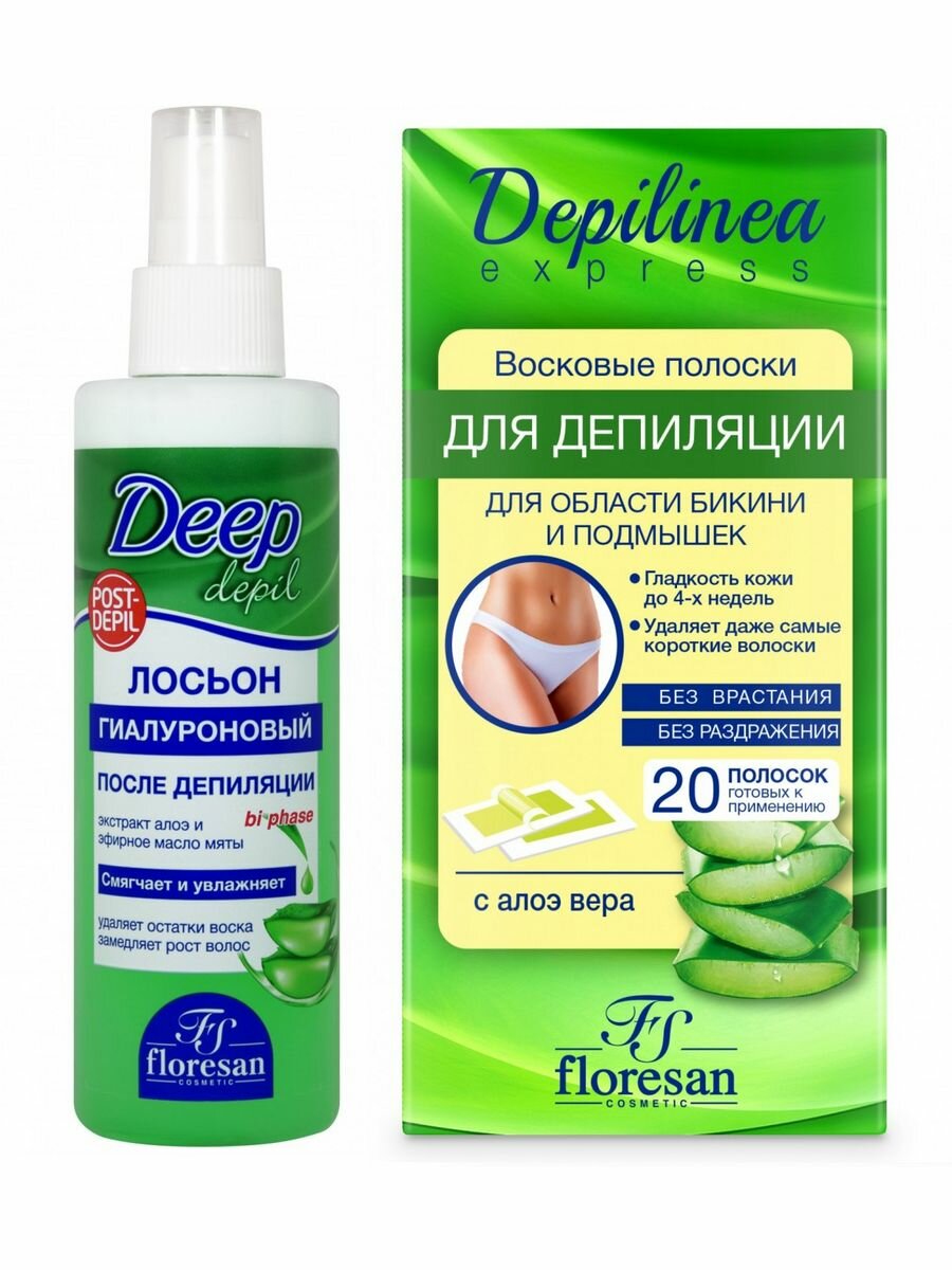Восковые полоски Floresan для зоны бикини с гелем после депиляции
