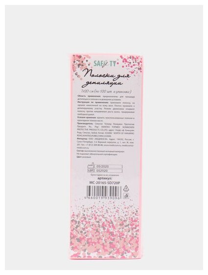 Полоски для депиляции розовые 7х20 см SAFETY (полиэстер), 100 шт/упк информация: