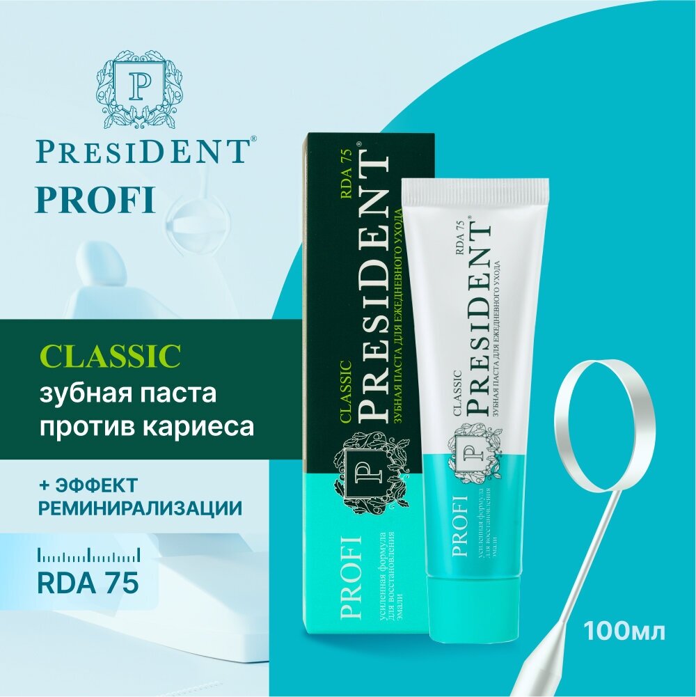 10 цен на Зубная паста PRESIDENT PROFI Classic (75 RDA) Ежедневная 100 мл
