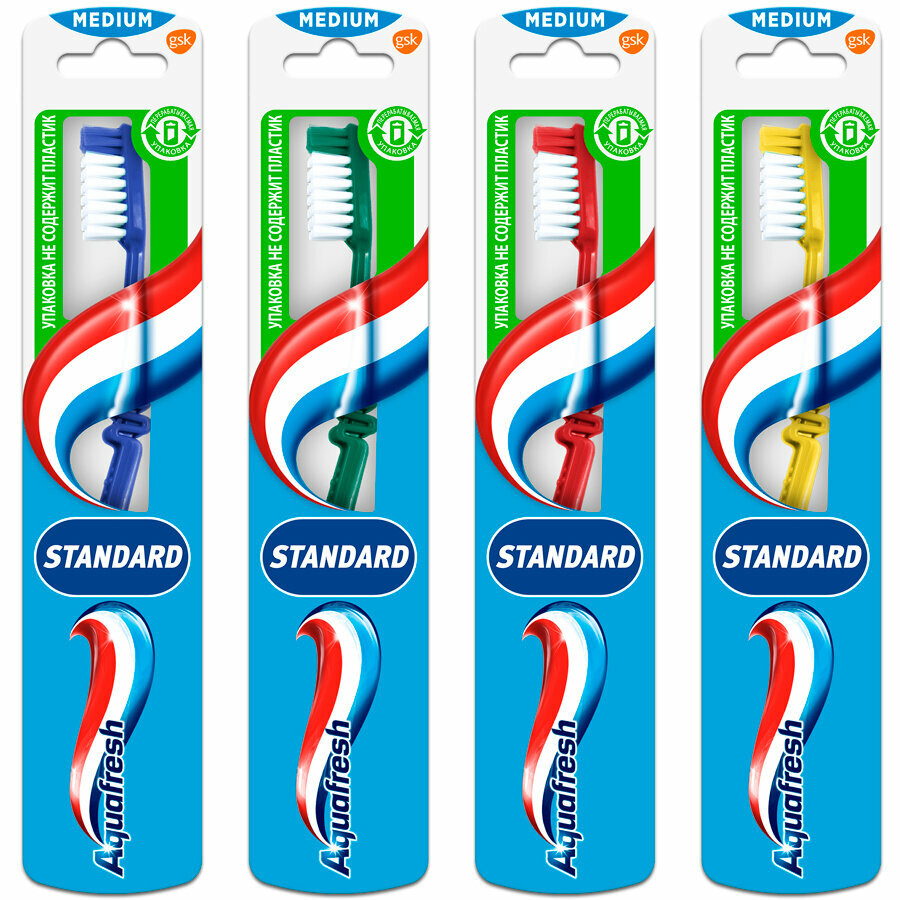 10 цен на Зубная щетка Aquafresh Standart для чистки зубов и предотвращения повреждений эмали и десен, средней жесткости, 4 шт