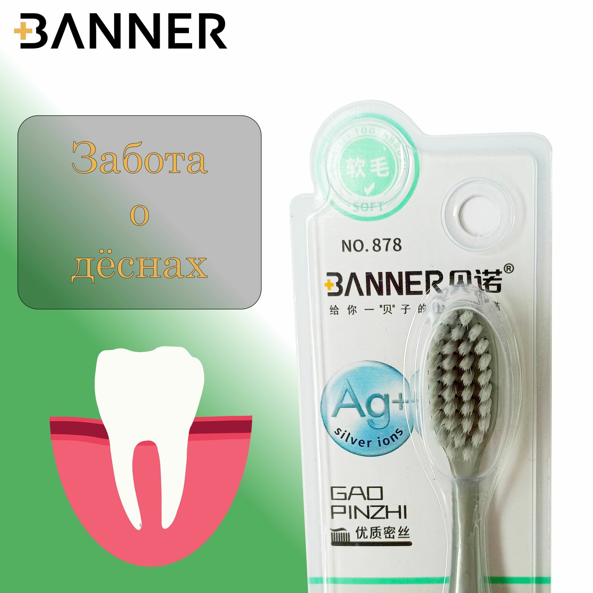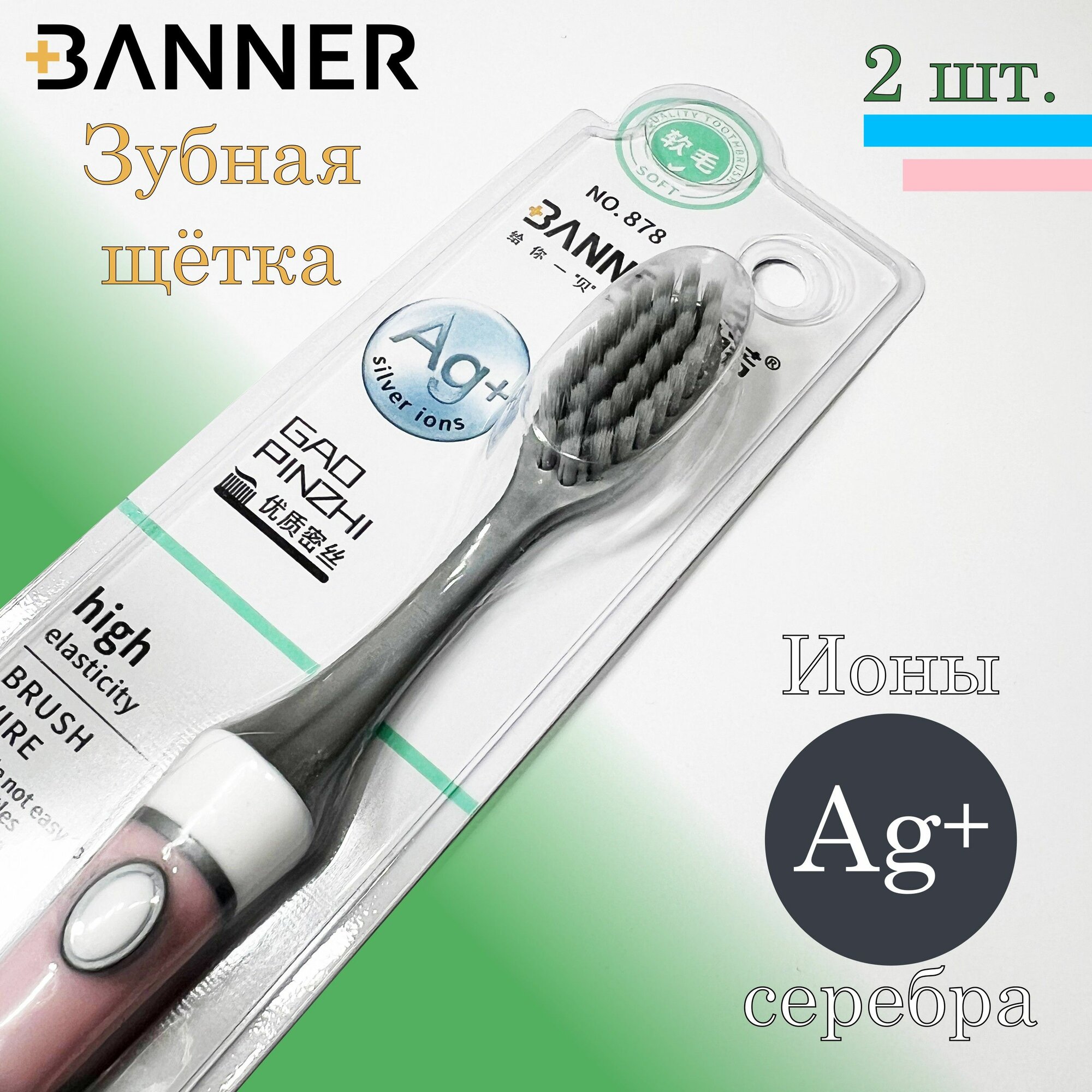10 цен на Зубная щётка BANNER №878 с ионами серебра, средней жёсткости, 2 штуки