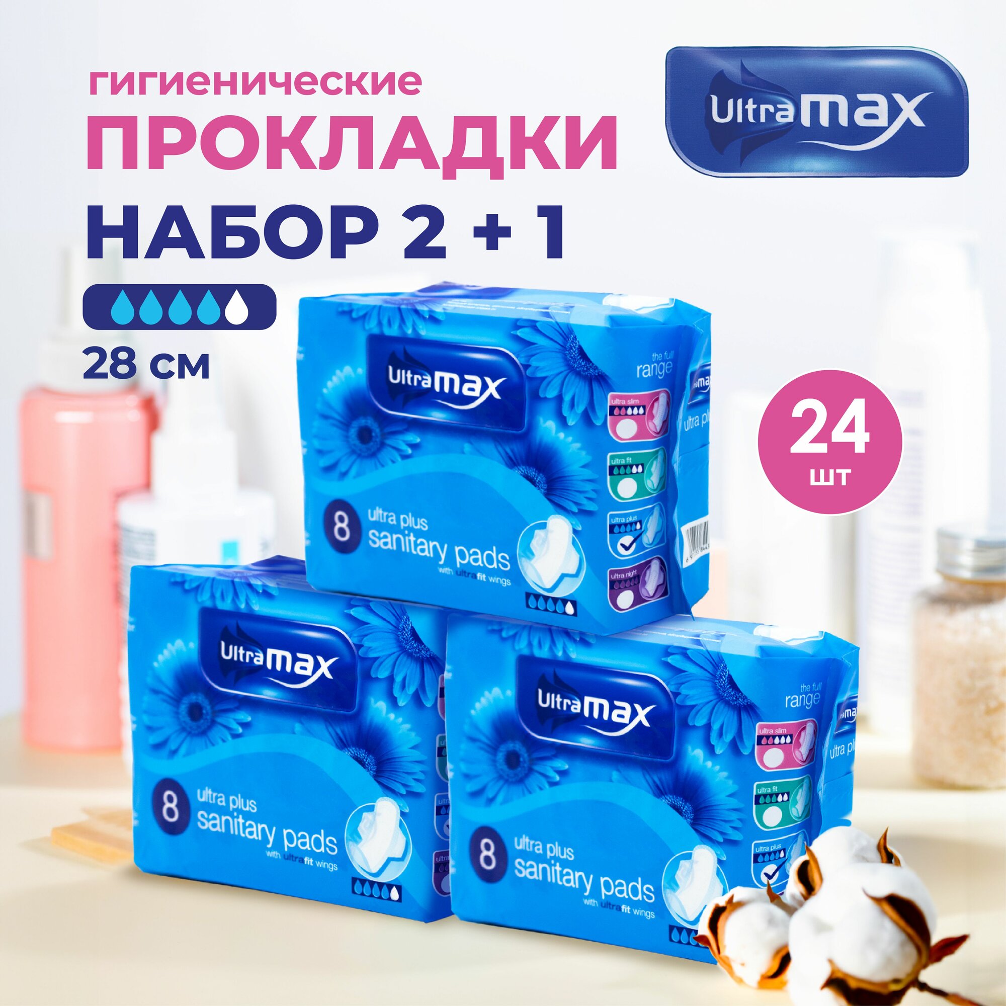 Прокладки гигиенические ежедневные UltraMax 280 мм. 24 шт. 4 капли информация: