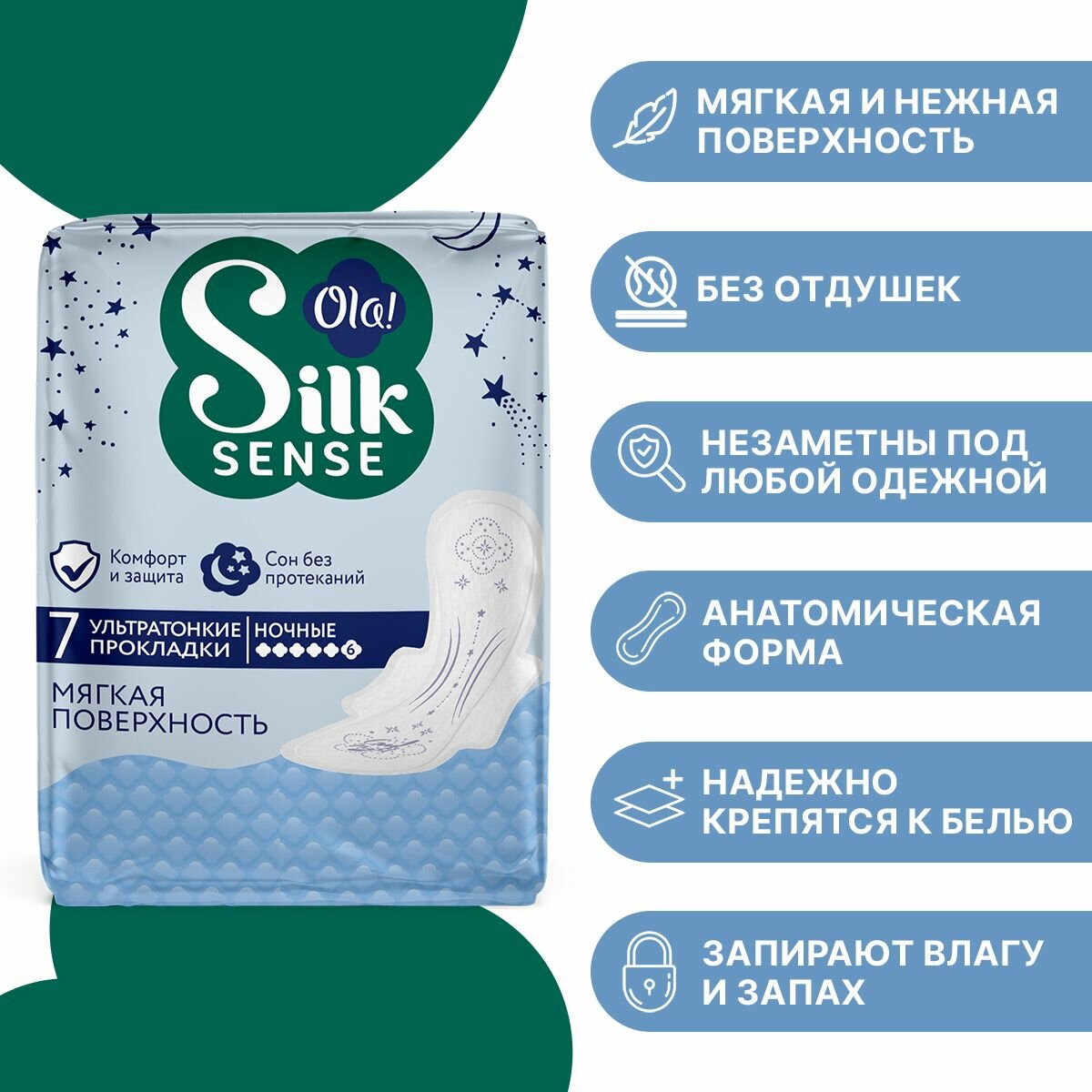 Прокладки женские ультратонкие ULTRA NIGHT 7шт. без аромата Ola! Silk Sense