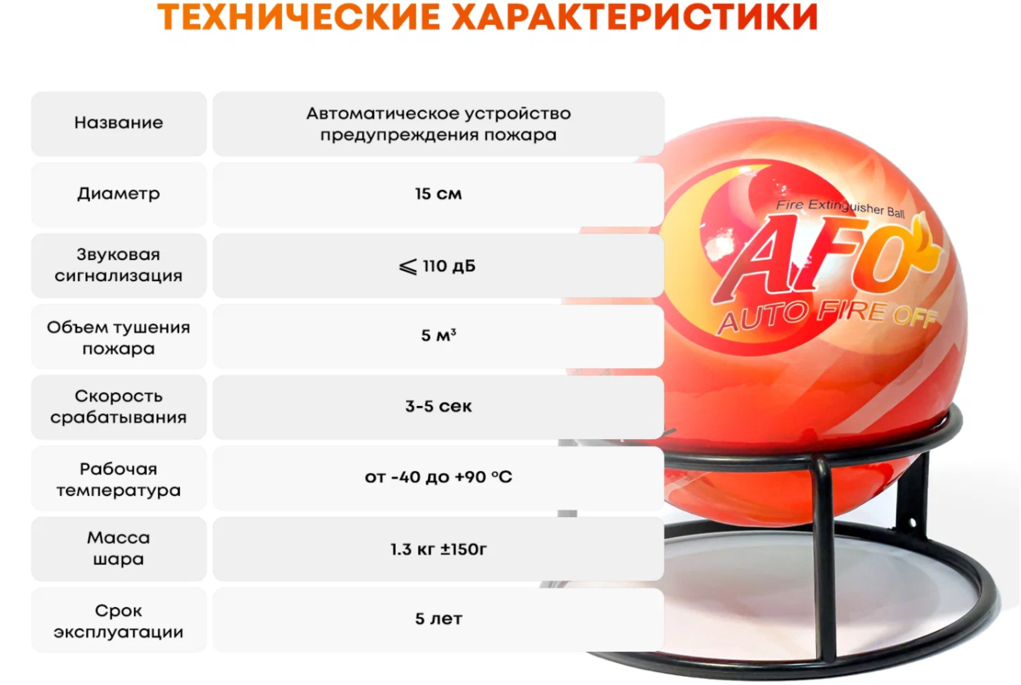 Огнетушитель Шар-AFO 1.3 кг информация:
