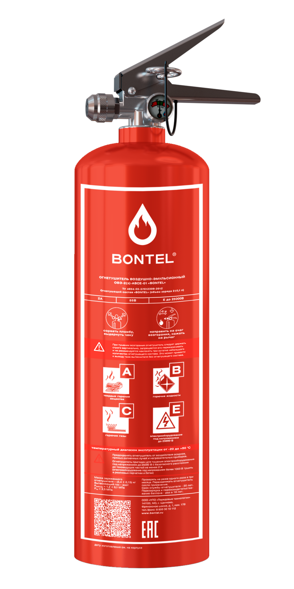 Воздушно-эмульсионный огнетушитель BONTEL ОВЭ-2(з)-ABСE-01 красный информация: