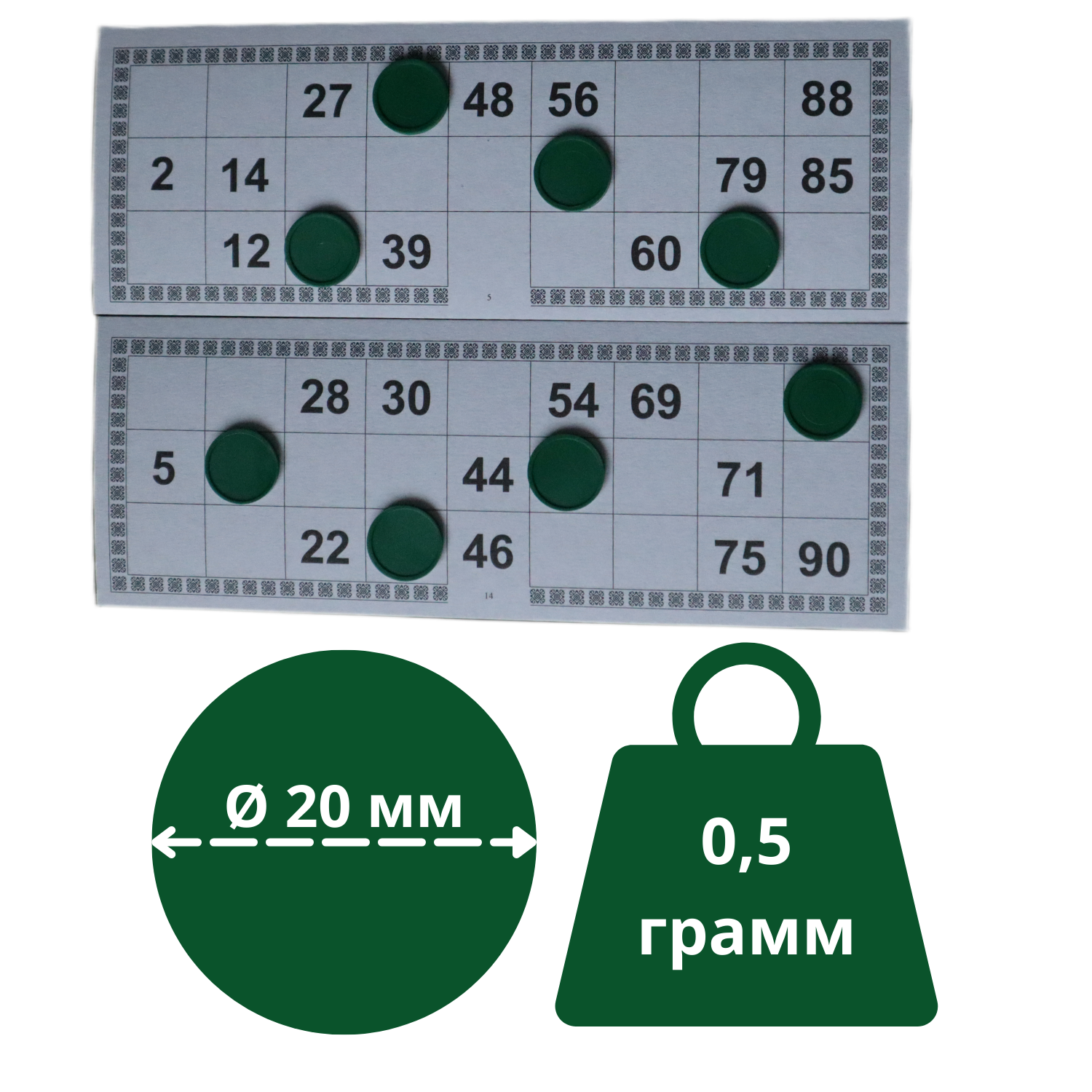 Фишки для лото (Жетоны для русского лото и настольных игр пластиковые) 200 штук (зелёные) информация:
