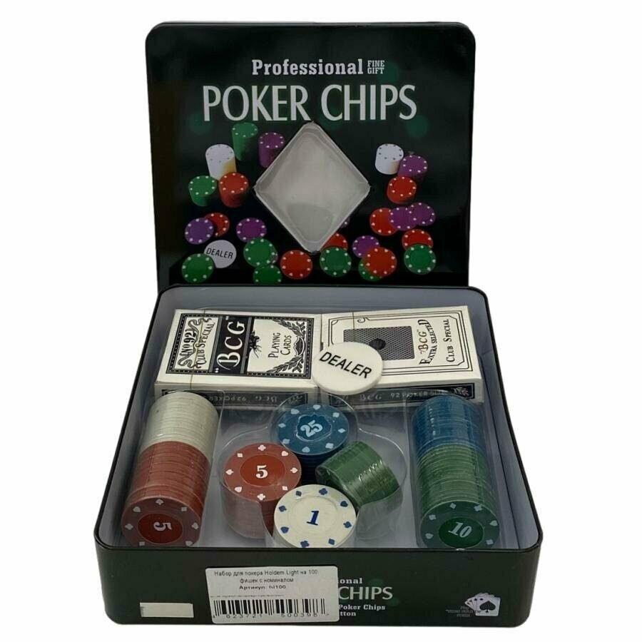 10 цен на Набор для покера Holdem Light на 100 фишек с номиналом