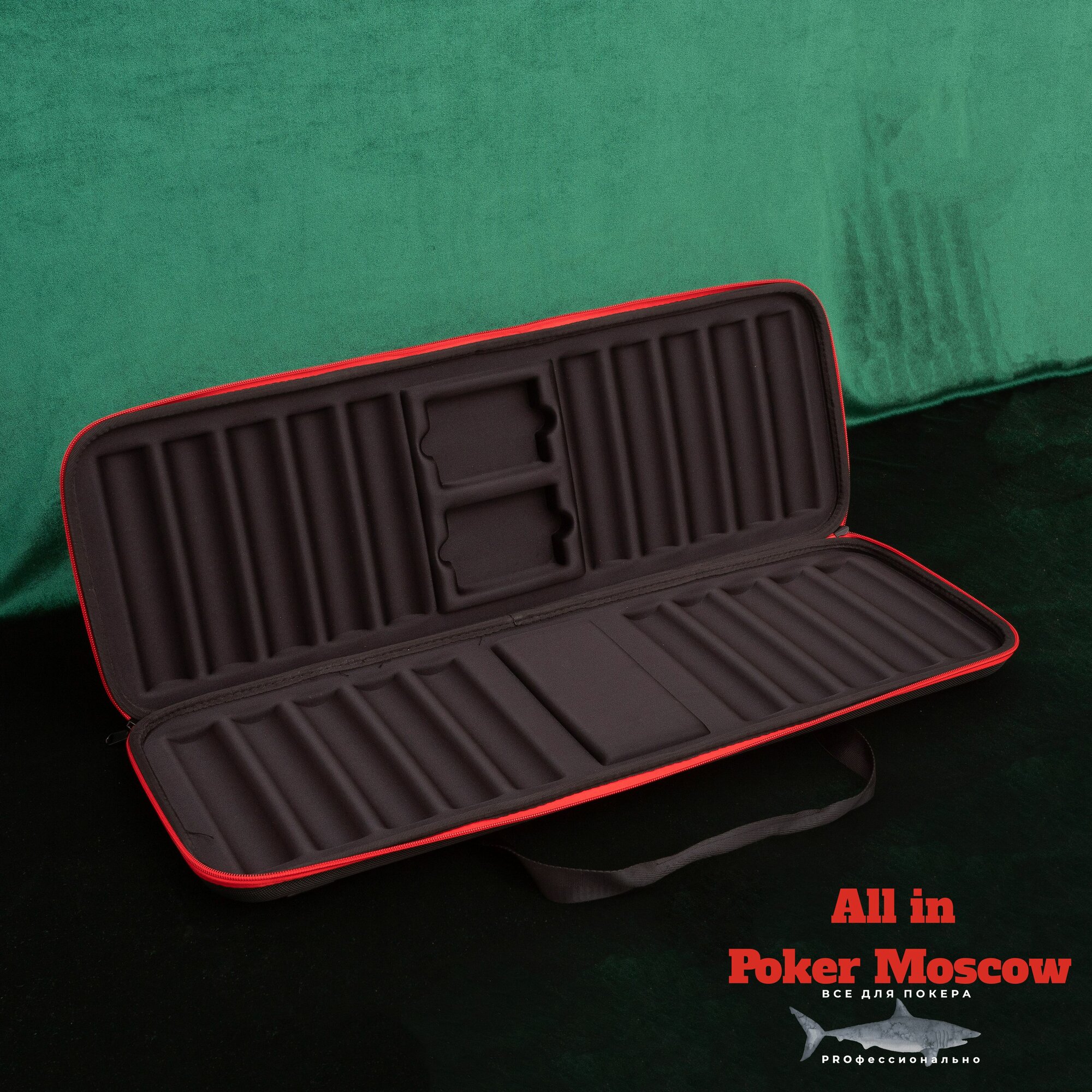 10 цен на Кейс для покерных фишек на 500 штук материал Eva черный с красной молнией