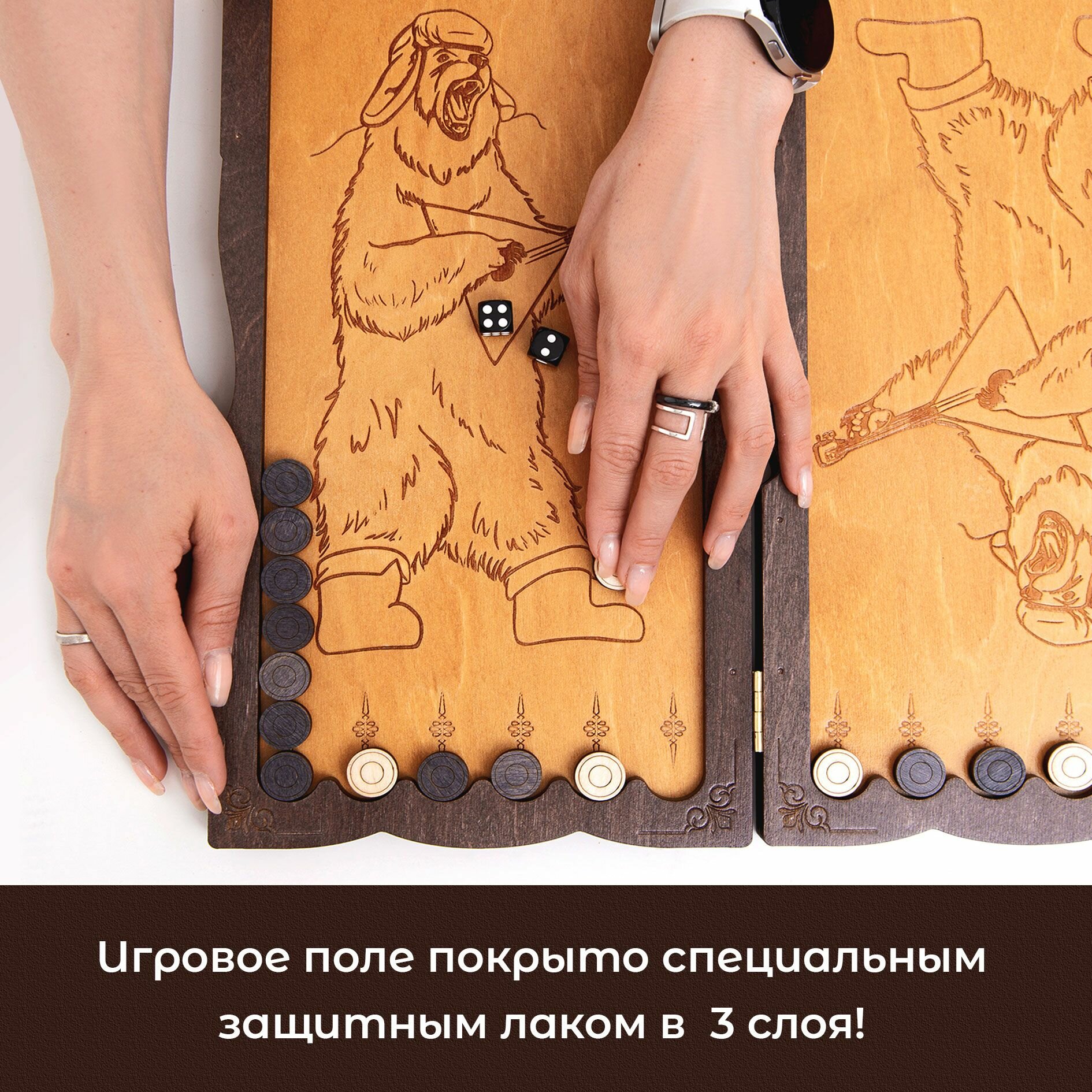 Нарды деревянные резные Герб России с медведем, мини нарды 38х39 см информация:
