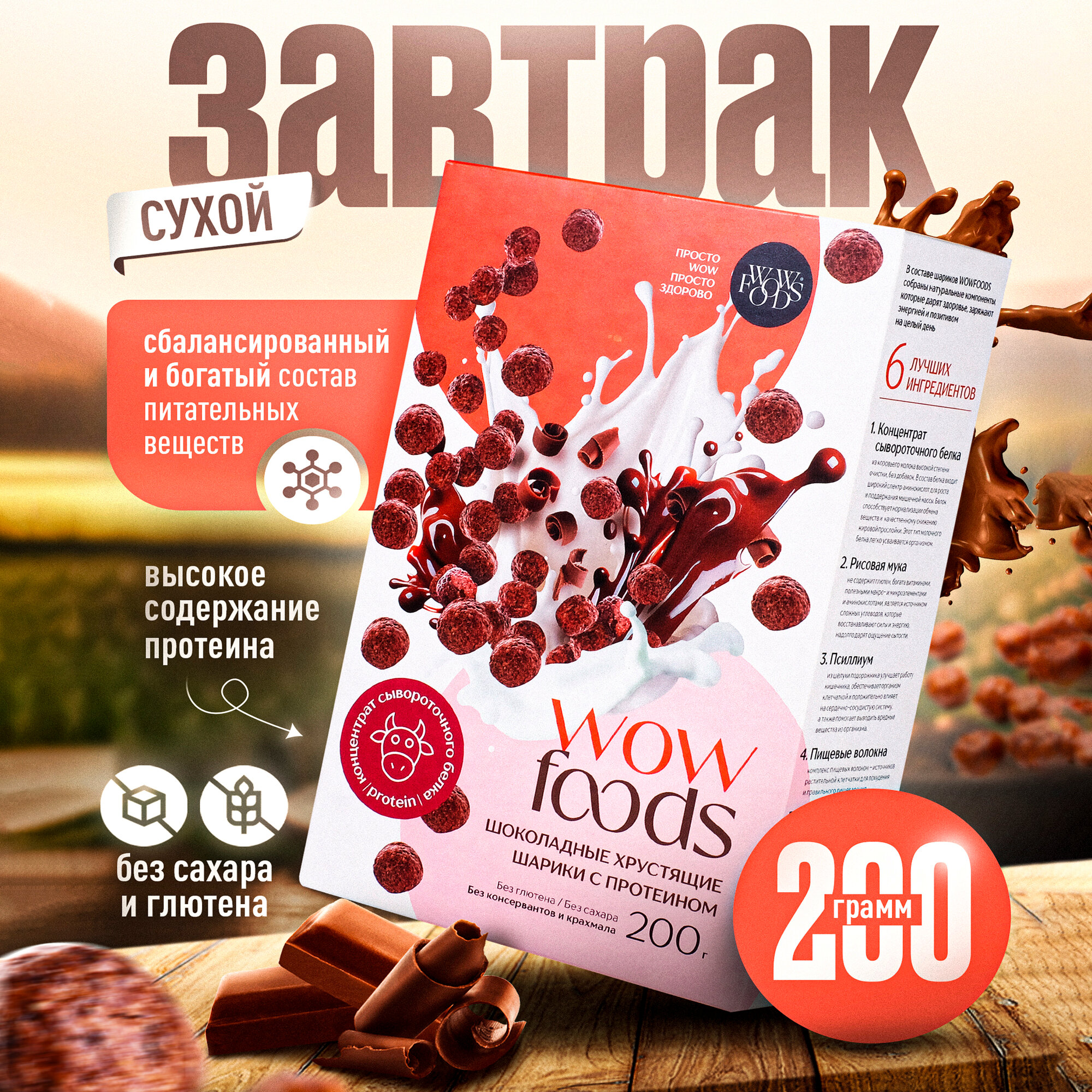 10 цен на Хрустящие шоколадные шарики без сахара и глютена с протеином, 200 грамм
