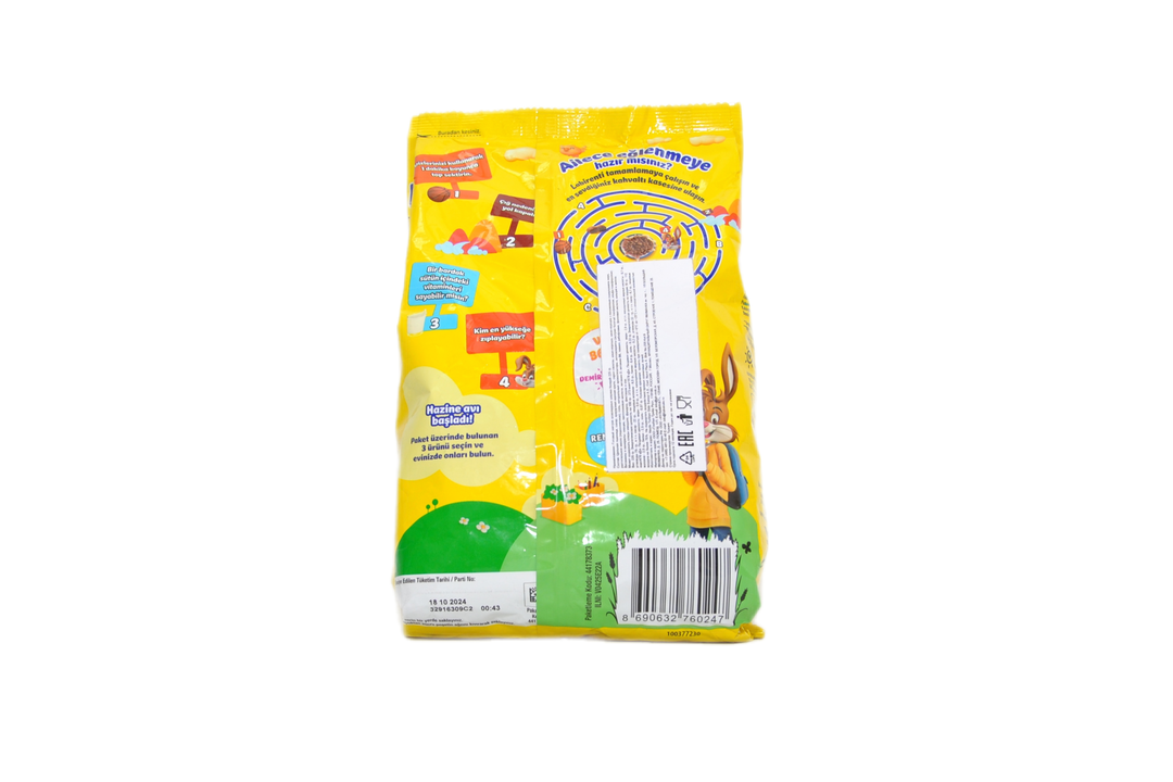 | Состав | Смесь цельнозерновой муки (49%) (кукурузной и пшеничной) / добавленных сахаров (сахар / глюкозный сироп и карамелизованный сахарный сироп) / кукурузного крахмала / какао (4,7%) / кукурузной крупы / растительного масла / натуральных ароматизаторов / йодированной соли / пищевой соды и смеси токоферолов. Витамины и минералы: витамин В1 / витамин В2 / витамин В3 / витамин В5 / витамин В6 / карбонат кальция / железо / цинк / магний. |