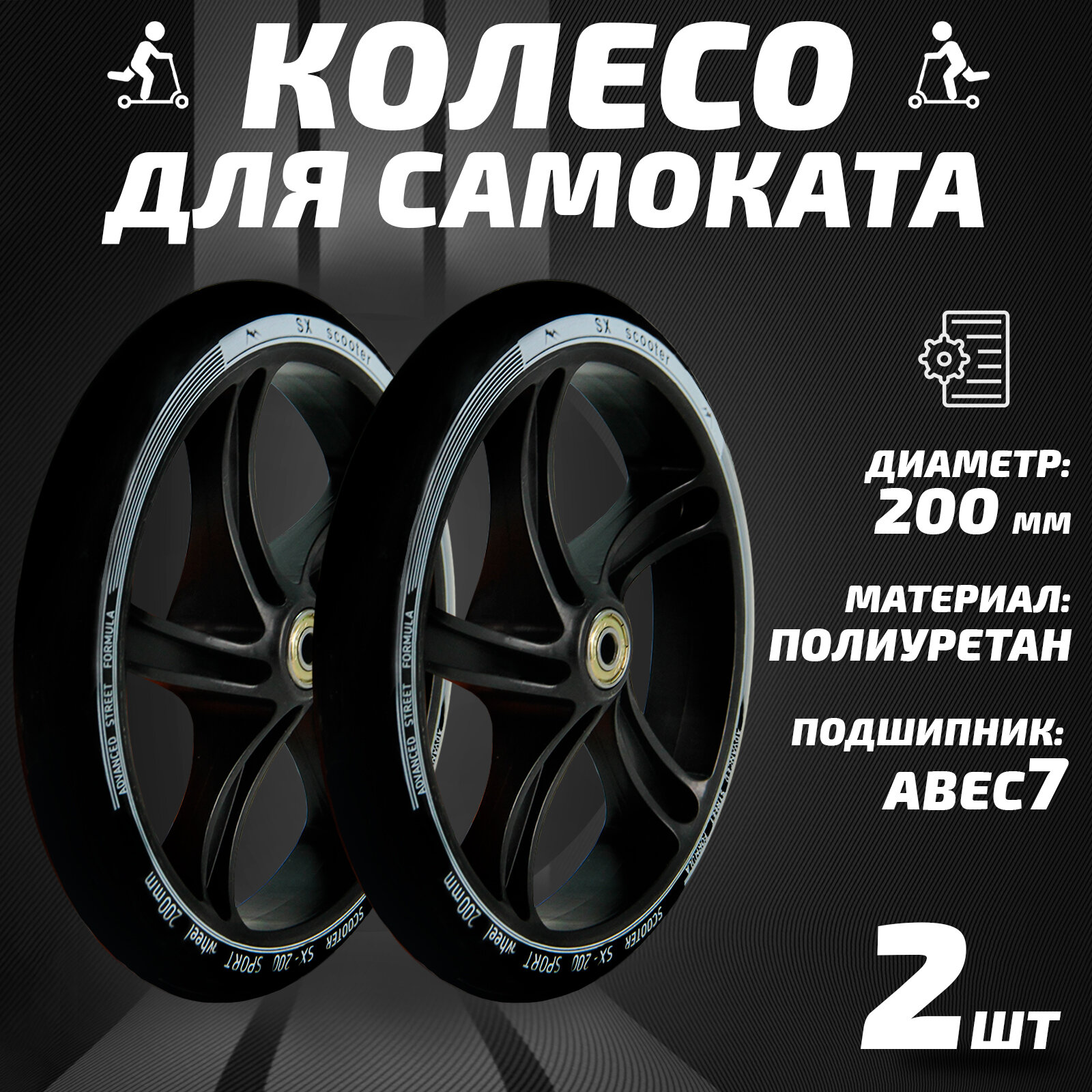 Колесо для самоката 200мм 2шт, полиуретан, черное информация:
