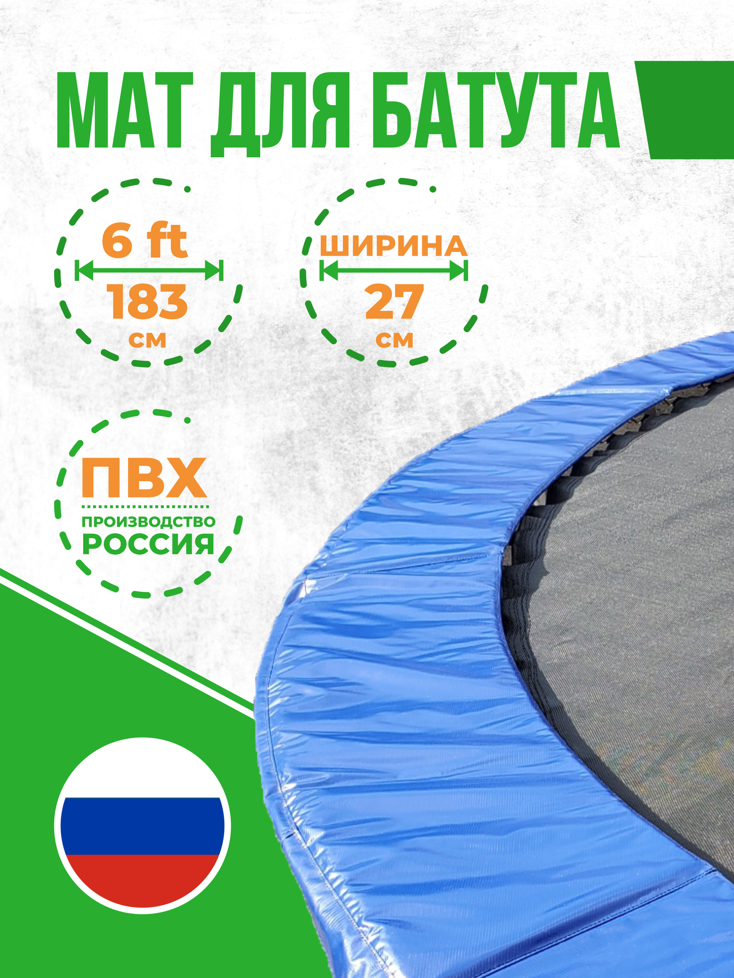 Защитный мат на пружины для батута 6 футов (183 см) информация: