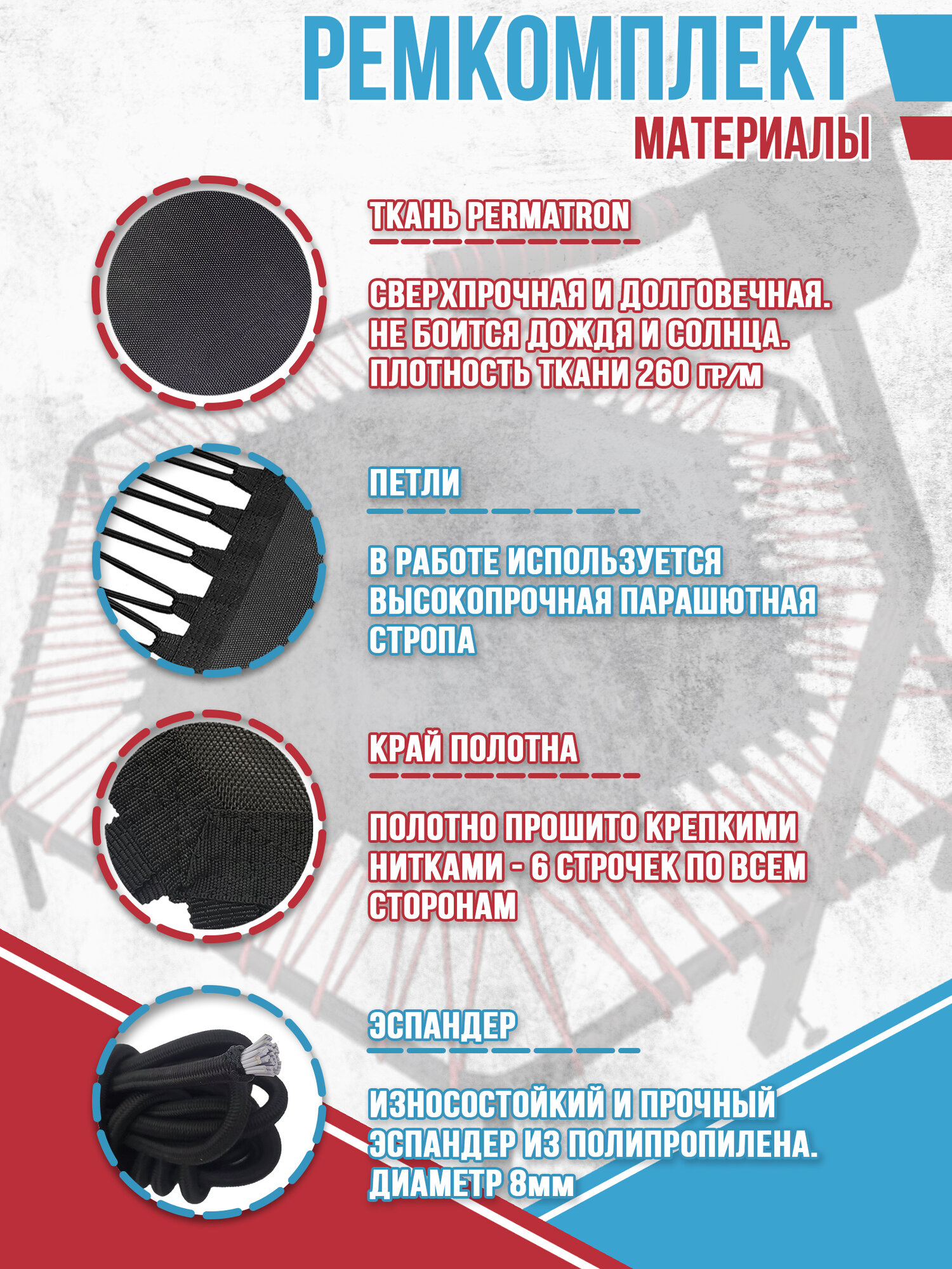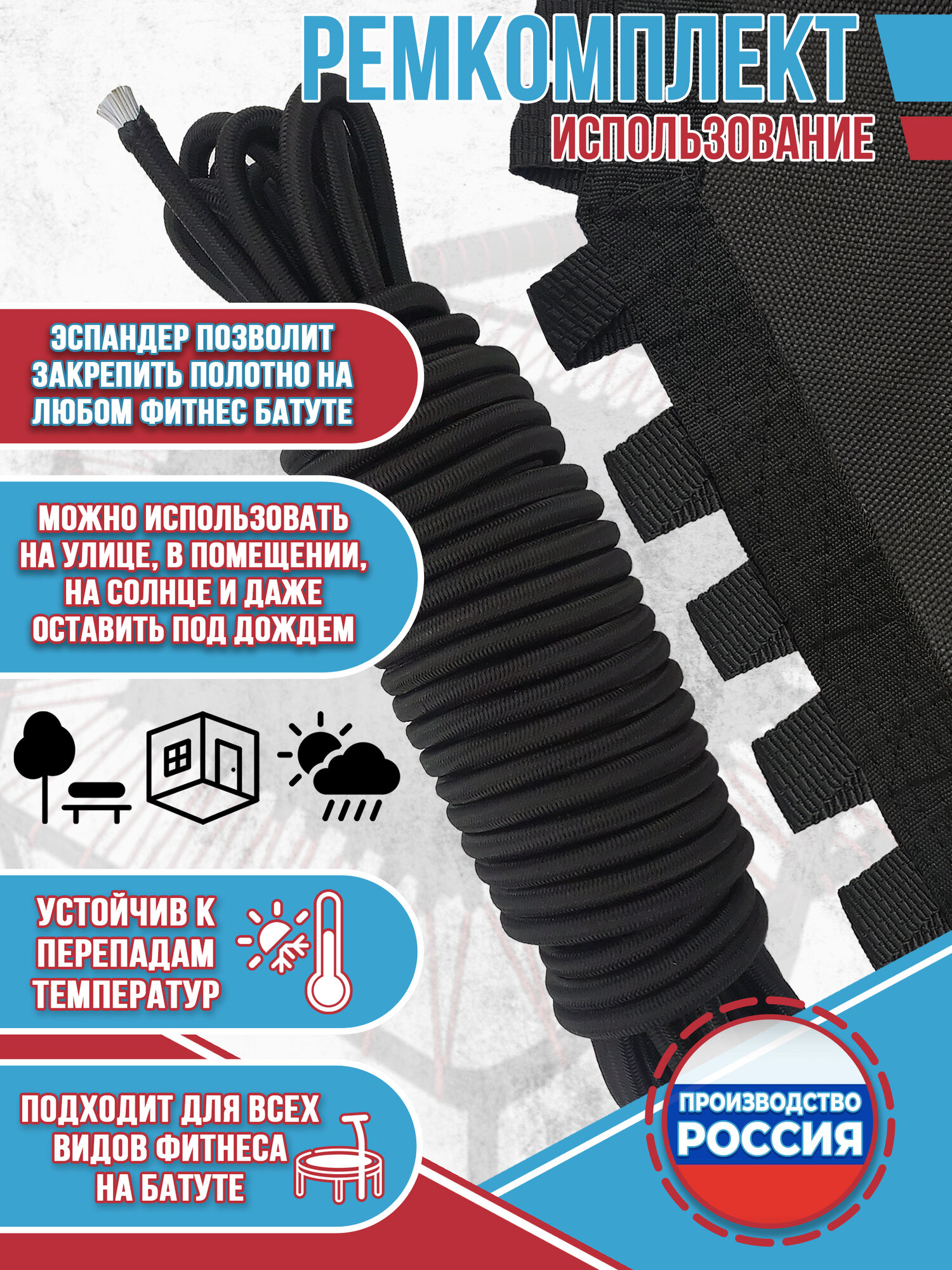 Ремкомплект для фитнес батута (полотно 96 см + эспандер) информация:
