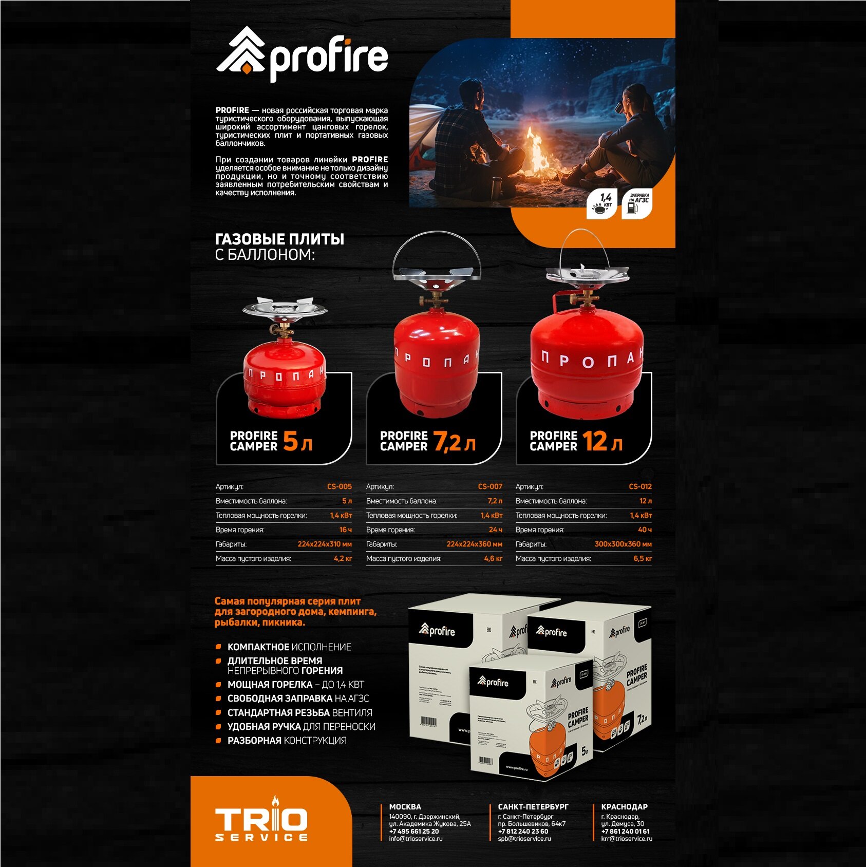 Туристическая газовая плита походная, с баллоном 5л, PROFIRE информация: