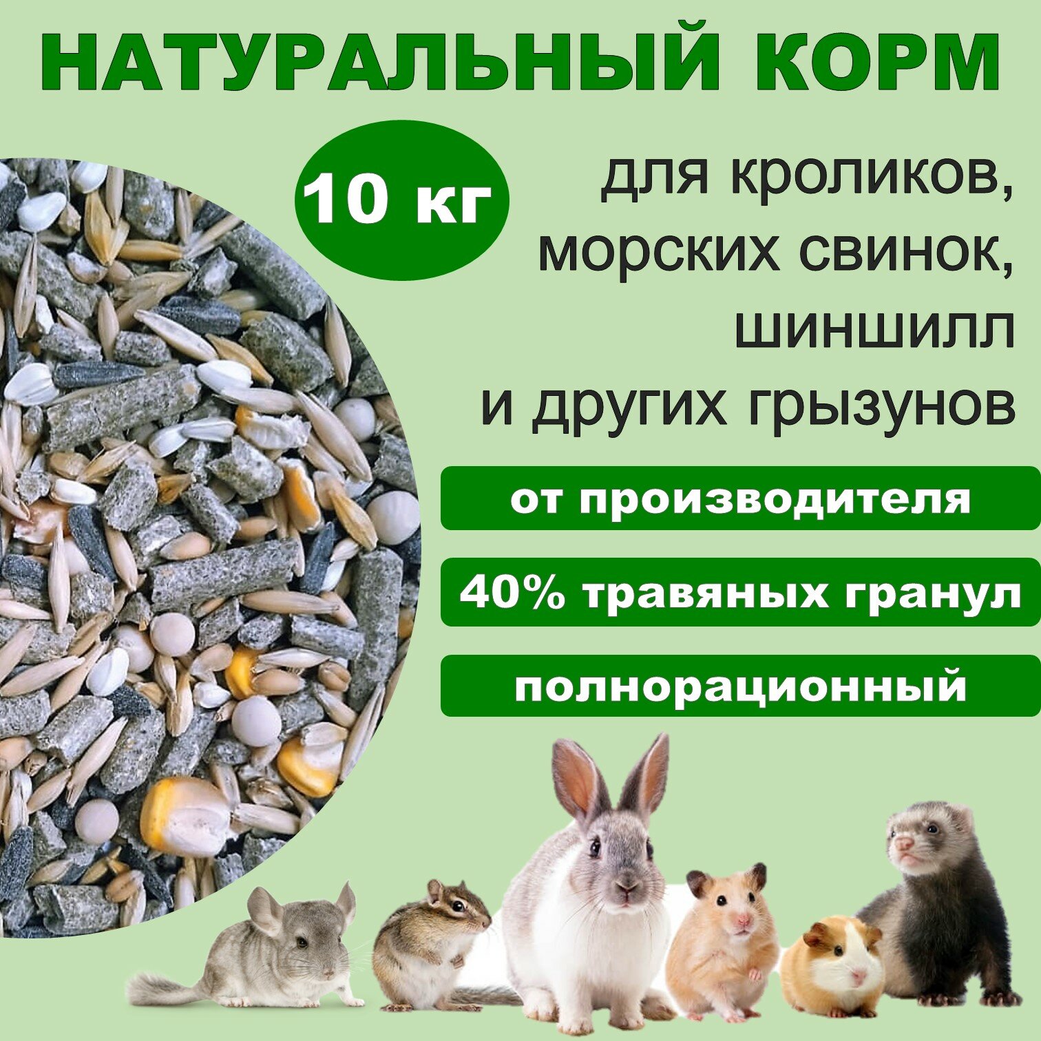 10 цен на Корм для кроликов, шиншилл, морских свинок, дегу "Премиум" с травяной гранулой, 10 кг