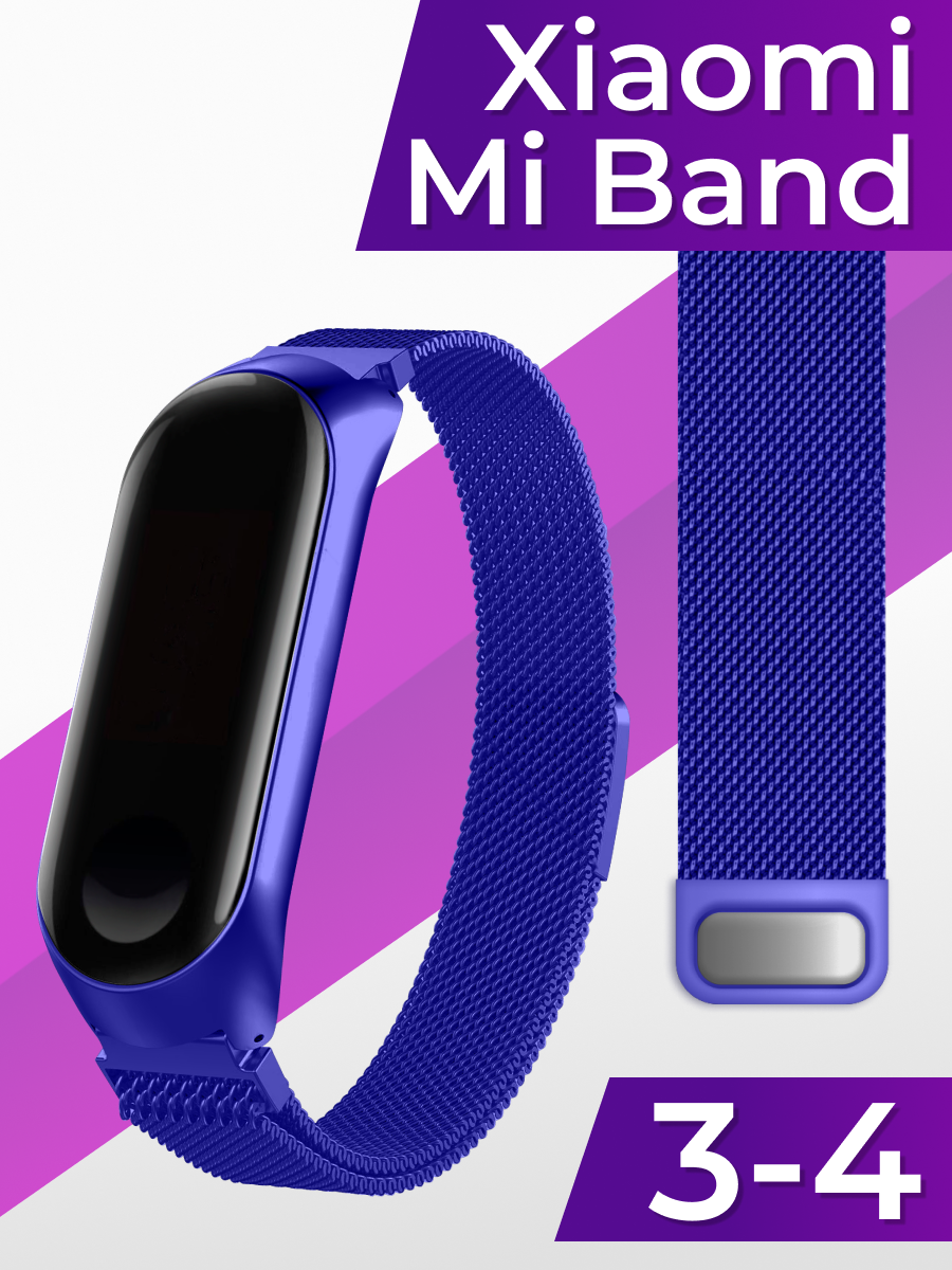 Отзывы на Ремешок миланская петля для умных часов Xiaomi Mi Band 3 и 4 / Металлический сменный браслет на часы Сяоми Ми Бэнд 3 и 4 / Синий