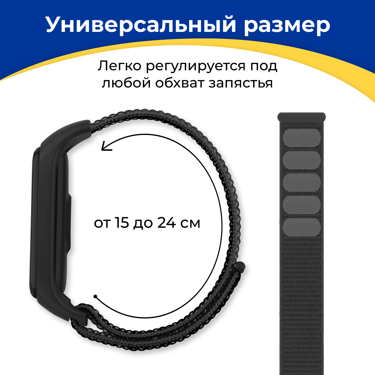 Нейлоновый ремешок для фитнес-трекера Xiaomi Mi Band 3, 4, 5, 6 и 7 / Тканевый сменный браслет для смарт часов Сяоми Ми Бэнд 3, 4, 5, 6 и 7 / Черный