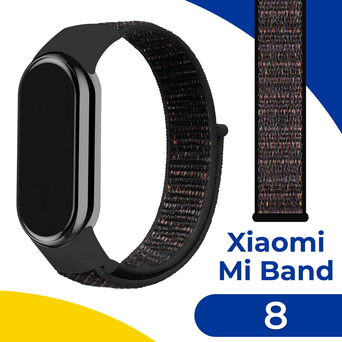 Нейлоновый тканевый ремешок для фитнес-трекера Xiaomi Mi Band 8 / Спортивный сменный браслет на умные смарт часы Сяоми Ми Бэнд 8 / Черно-оранжевый
