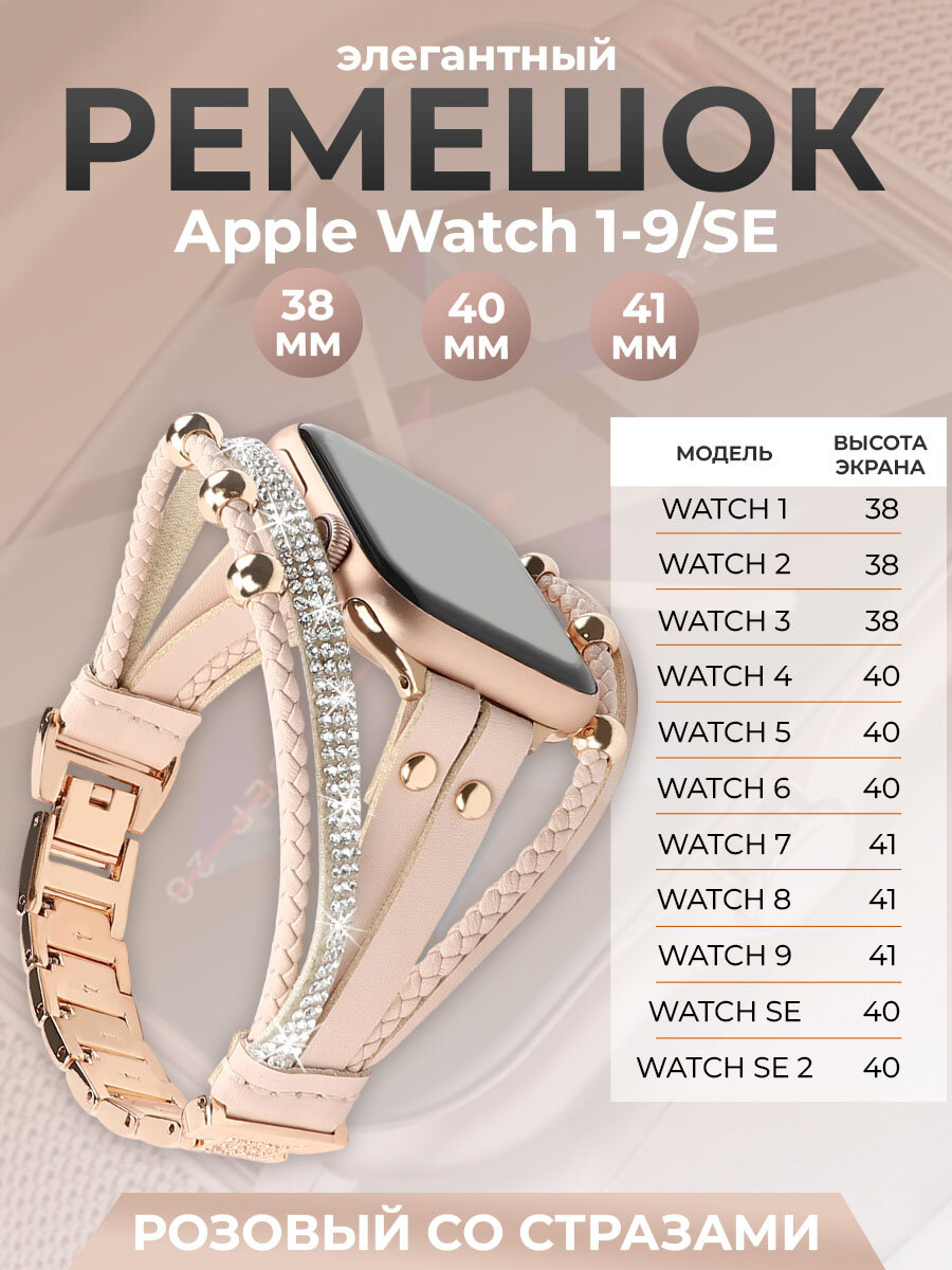 10 цен на Элегантный ремешок для Apple Watch 1-9 / SE (38/40/41 мм), розовый со стразами