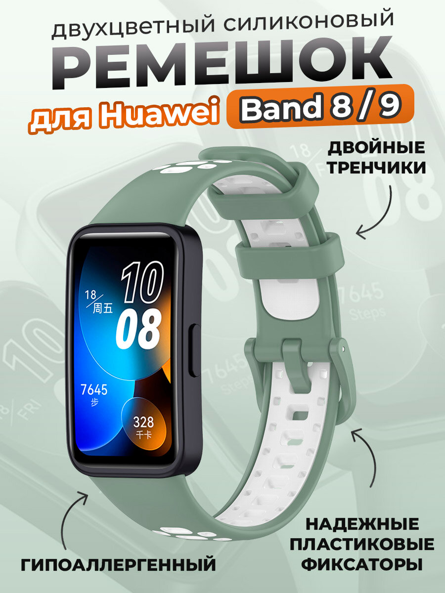 Двухцветный силиконовый ремешок для Huawei Band 8/9, бело-зеленый информация: