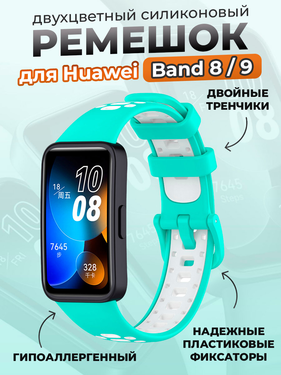 Двухцветный силиконовый ремешок для Huawei Band 8/9, бирюзово-белый информация: