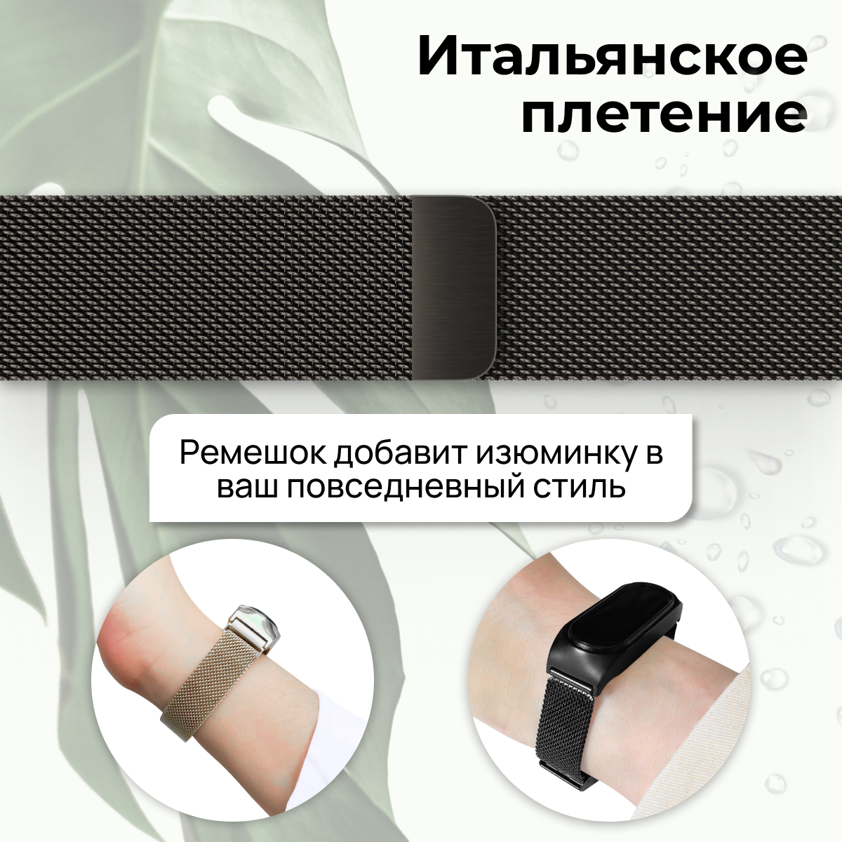 Сменный браслет миланская петля на часы Xiaomi Mi Band 5 и 6 / Металлический ремешок для смарт часов Сяоми Ми Бэнд 5 и 6 / Графит 789 ₽