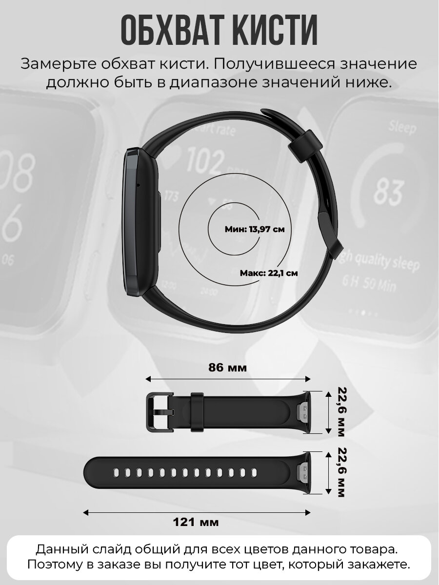 Силиконовый ремешок для смарт часов Xiaomi Mi Band 5, 6 и 7 / Спортивный сменный браслет на фитнес трекер Сяоми Ми Бэнд 5, 6 и 7 / Черный