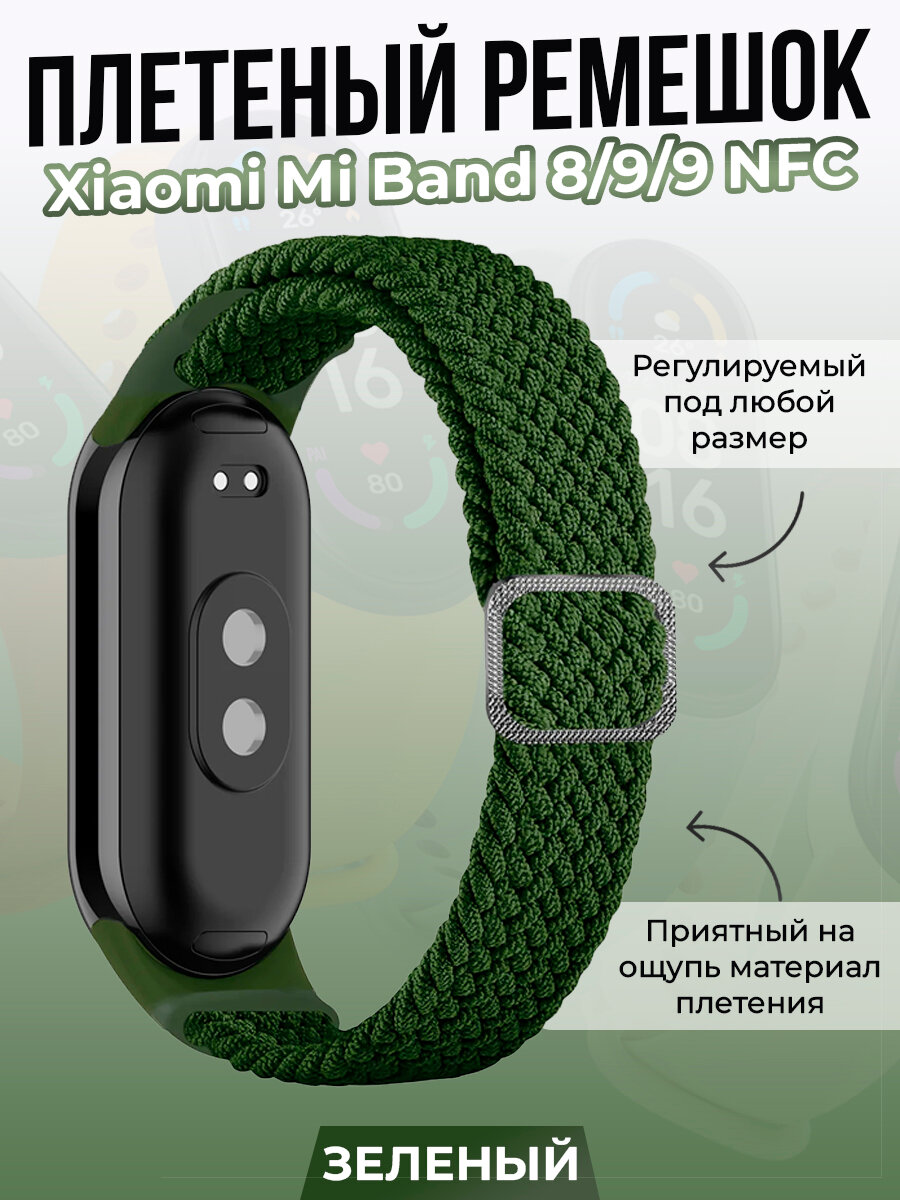 10 цен на Плетеный ремешок для Xiaomi Mi Band 8/ 9/ 9 NFC, регулируемый под любой размер, зеленый