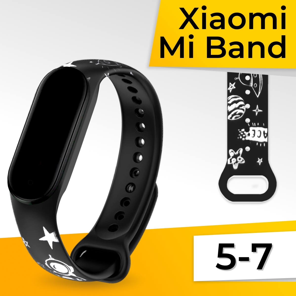 Силиконовый ремешок для умных часов Xiaomi Mi Band 5, 6, 7 / Сменный спортивный браслет для фитнес трекера Сяоми Ми Бэнд 5, 6, 7 / Космос черный информация: