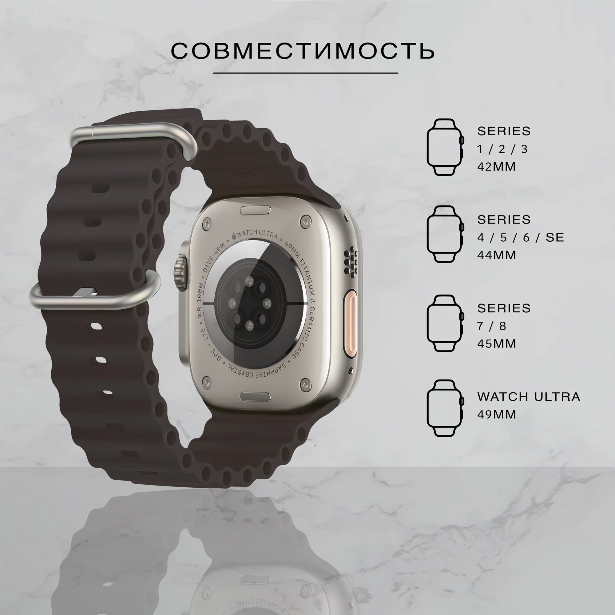 Отзывы на Силиконовый ремешок для Apple Watch 42-49mm Ocean Band, серо-коричневый