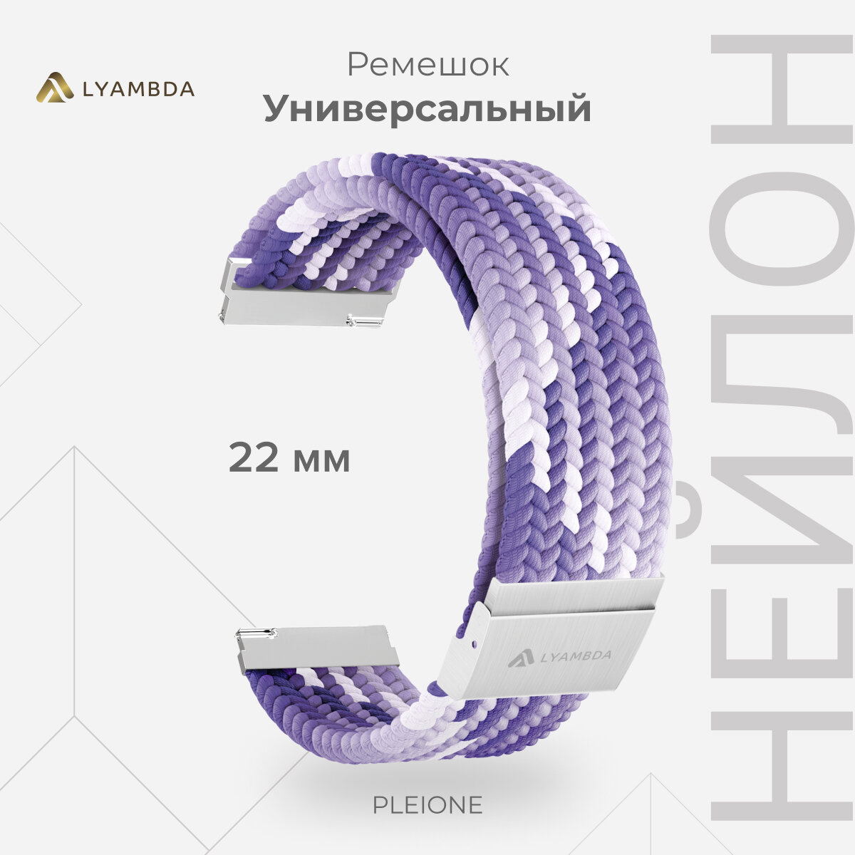 10 цен на Универсальный плетеный нейлоновый ремешок для часов 22 mm LYAMBDA PLEIONE DSN-13-22-VT для часов Garmin, Samsung, Huawei, LG, Rolex, Honor, сиреневый