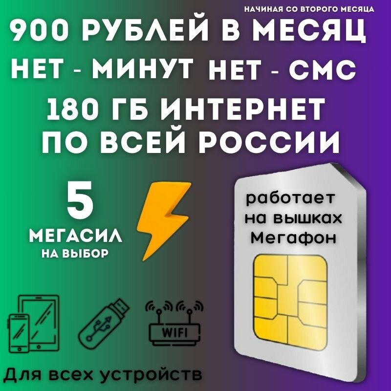 "Безлимитный для дачи" комплект интернета для дачи, сим карта 900 рублей в месяц 180 ГБ по всей России JKV2GS информация: