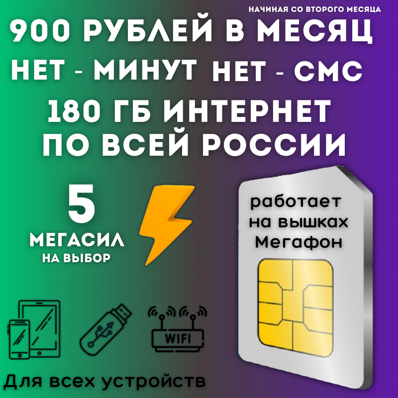 SIM-карта Безлимит по РФ с Wi Fi, для всех устройств, 990 р / в месяц/ сим карта