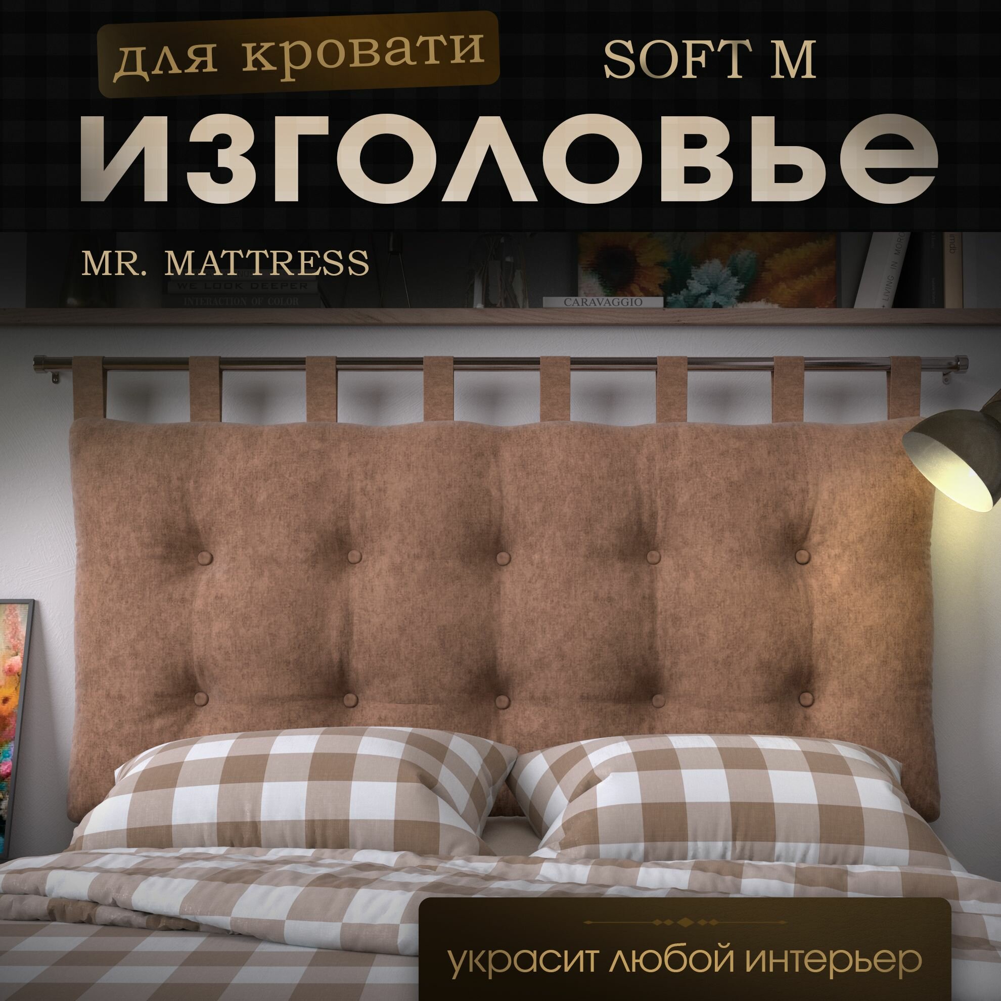 Набивное изголовье-подушка для кровати Mr. Mattress Soft M 80x70 Toffee с креплением информация: