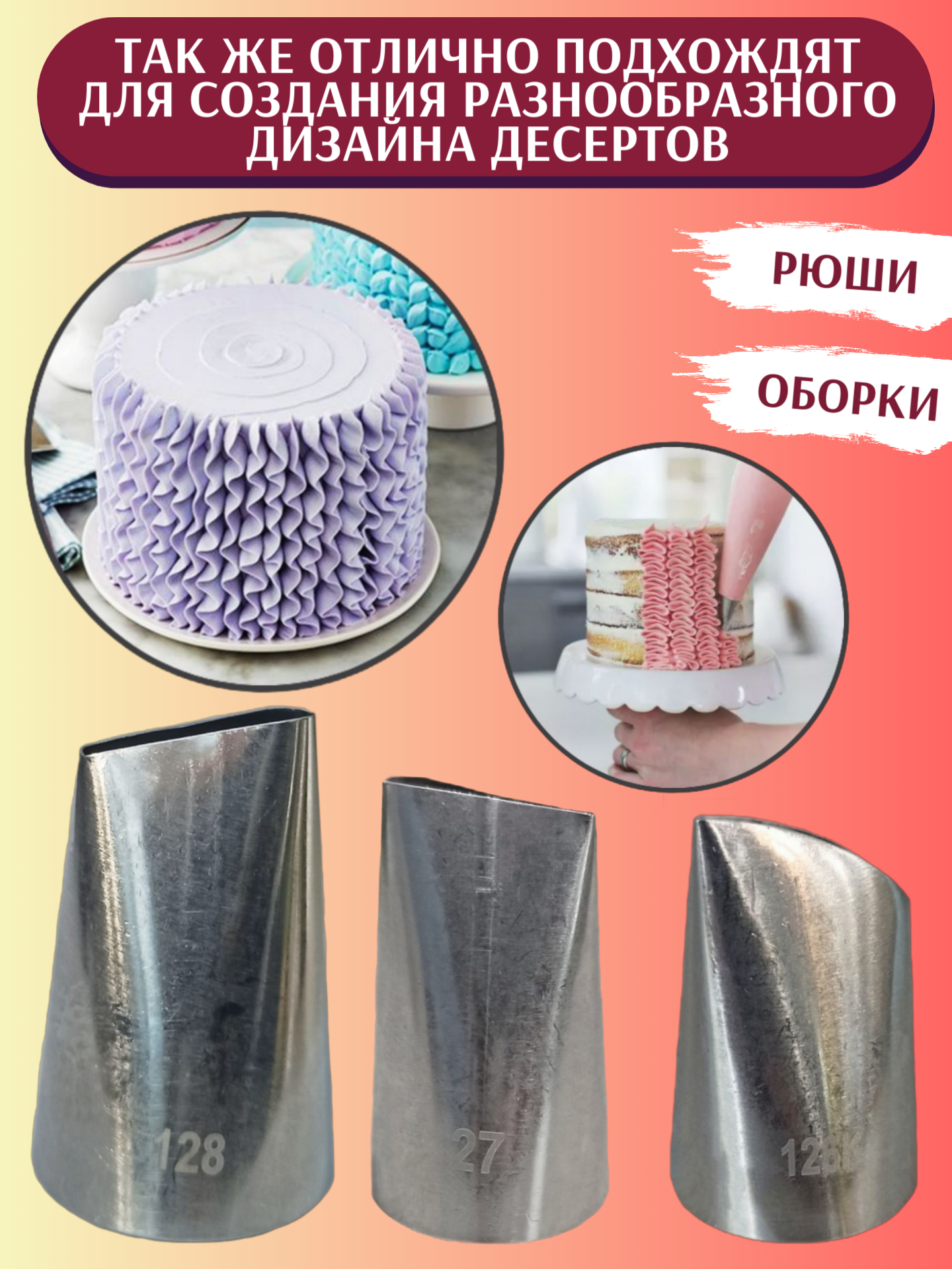10 цен на Набор кондитерских насадок для создания цветов из крема "Розы" (Кондитерская насадка Лепесток Розы 128, 127, 126К)