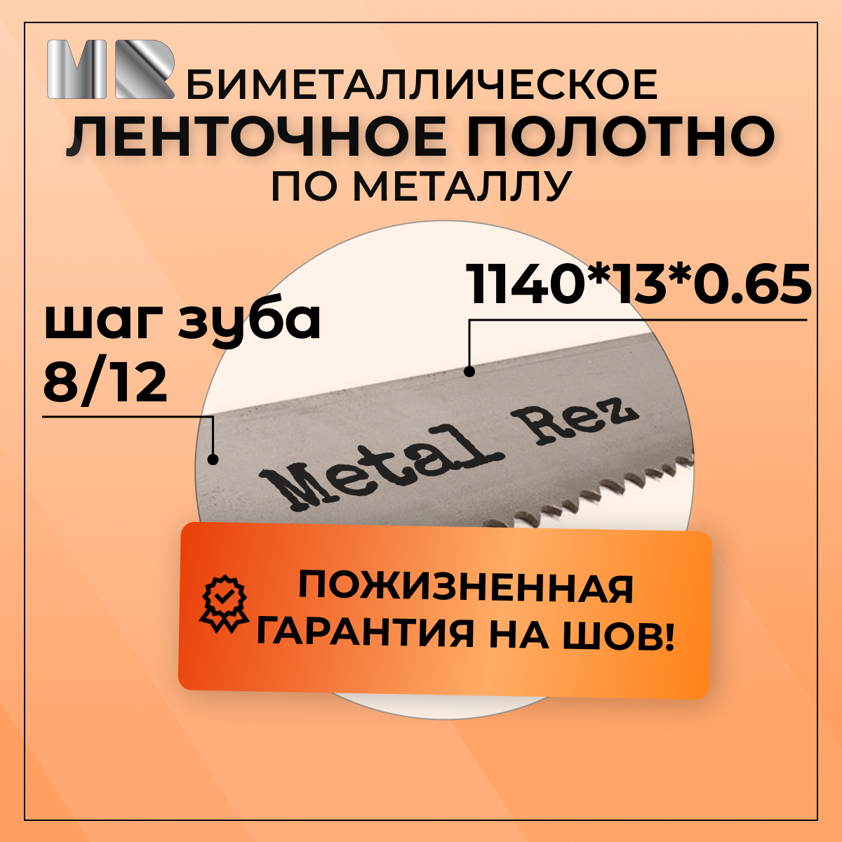 Отзывы на Полотно для ленточной пилы по металлу MetalRez M42 1140 x 13 х 0,65 с шагом зуба 8/12 от 1 шт биметаллическое