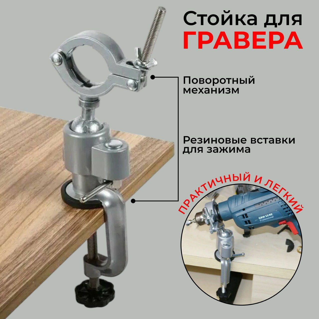 Стойка для гравера, гибкого вала, дрели, поворотная с креплением за край стола информация: