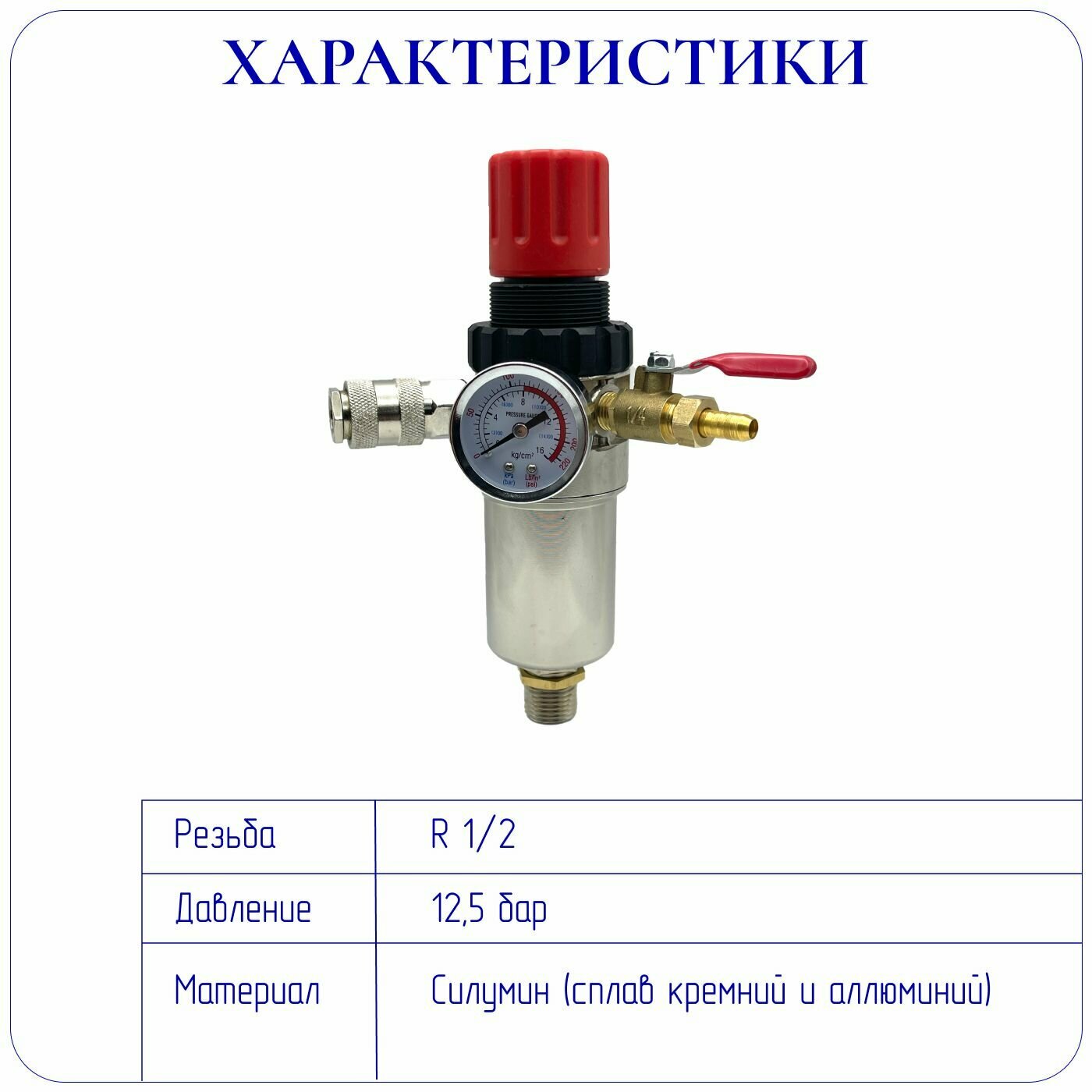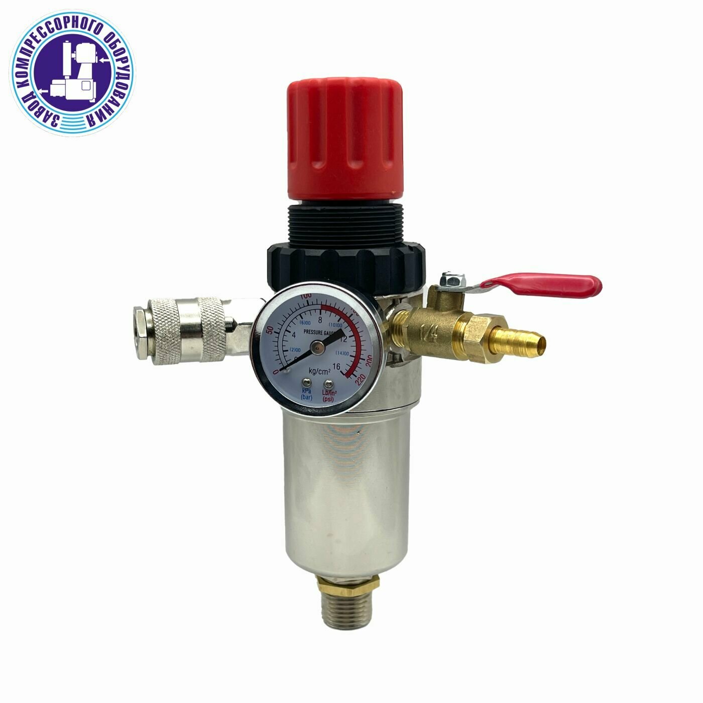 10 цен на Влагоотделитель с регулятором давления (влаго-масляный сепаратор) 1/2 в комплекте с краном + быстросъемным соединением для компрессора, ЭнергоРесурс