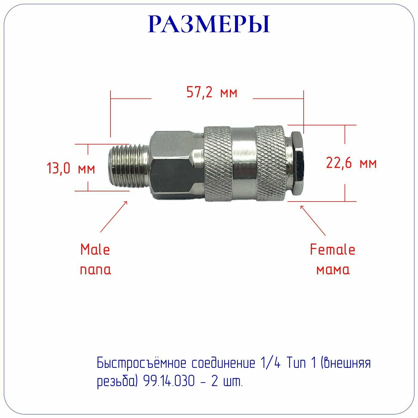 | Комплектация | 1) Влаго-масляный сепаратор 12,5 бар 1/2 (99.04.001) - 1 шт. 2) Кран воздушный 1/4 (под шланг 10 мм.) (99.15.001) - 1 шт. 3) Быстросъёмное соединение 1/4 тип 1 (наруж. резьба) (99.14.030) - 1 шт. 4) Манометр G 1/4 0-1,6 мра (99.18.005) - 1 шт. |