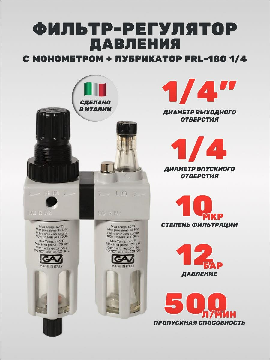 Фильтр/редуктор/лубрикатор GAV FRL-180 (10084) 12 атм , 1/4F , 1/4F