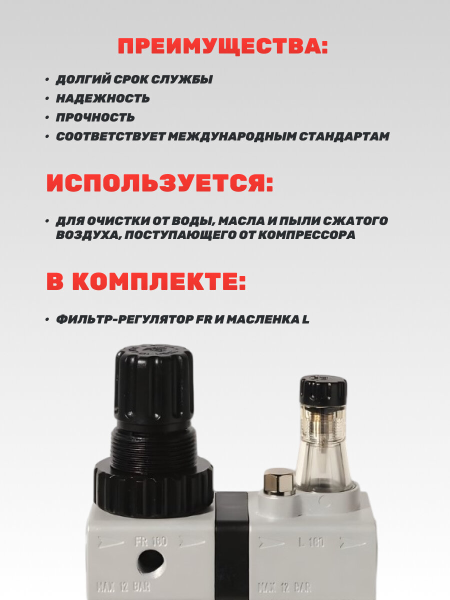 Фильтр-регулятор давления с манометром + лубрикатор FRL-180 1/4 информация: