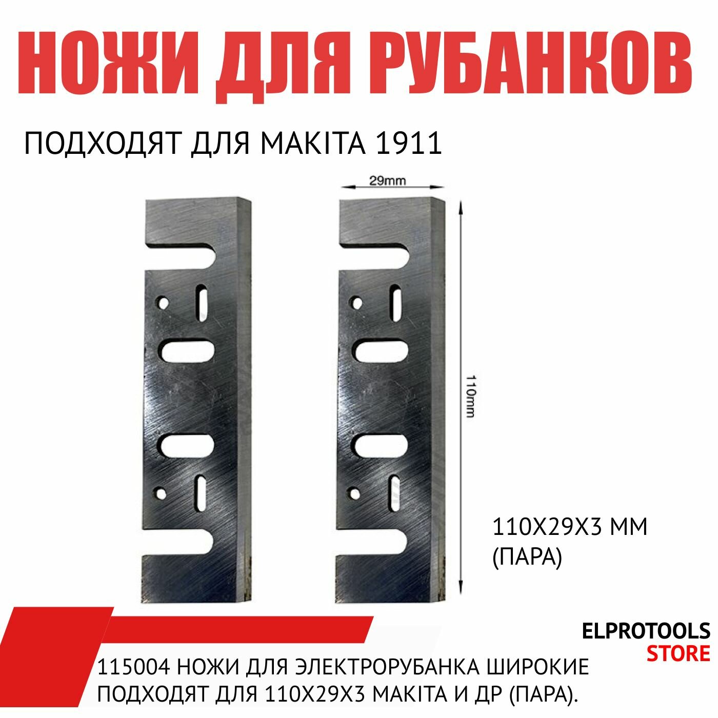 115004 Ножи для электрорубанка широкие подходят для 110х29х3 Makita и др (пара). информация: