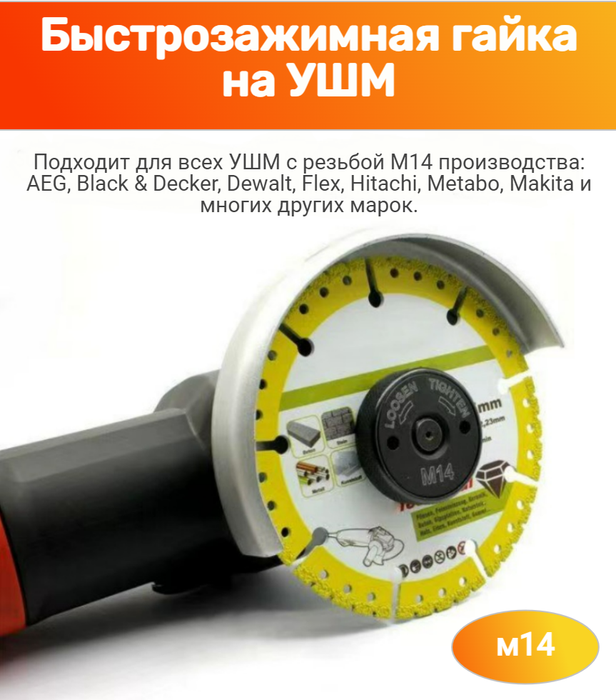 Быстрозажимная гайка для УШМ М14 информация: