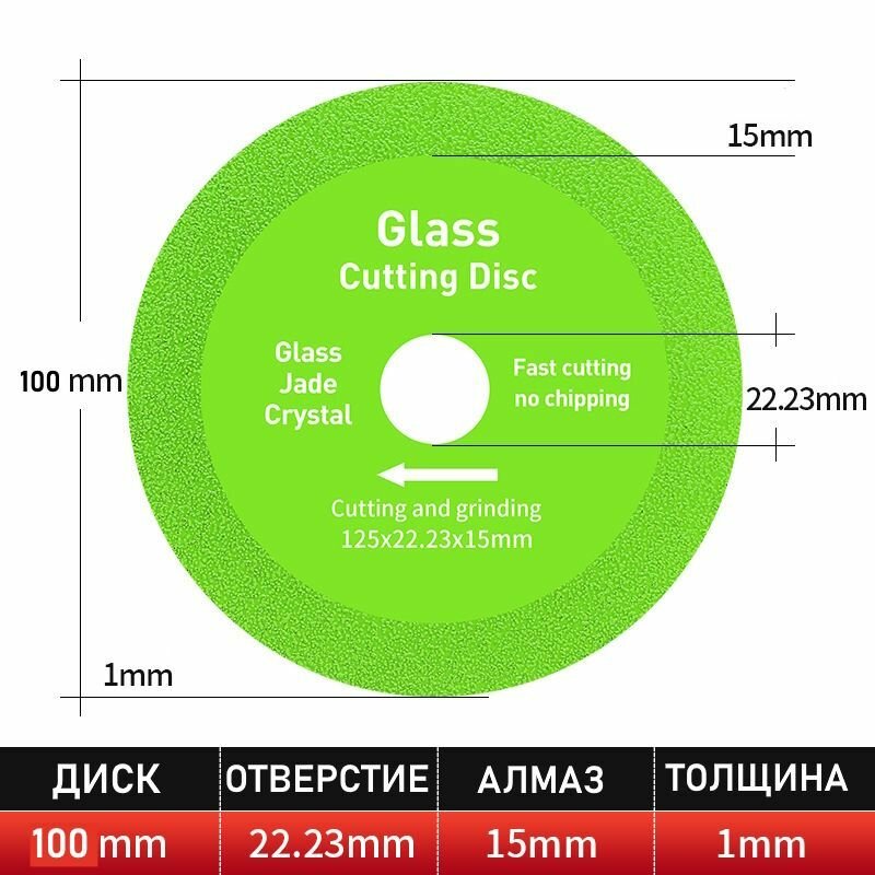 | Дополнительная информация | Диск 100мм диаметром, 1мм толщиной и 22,23мм посадочное отверстие на болгарку! |