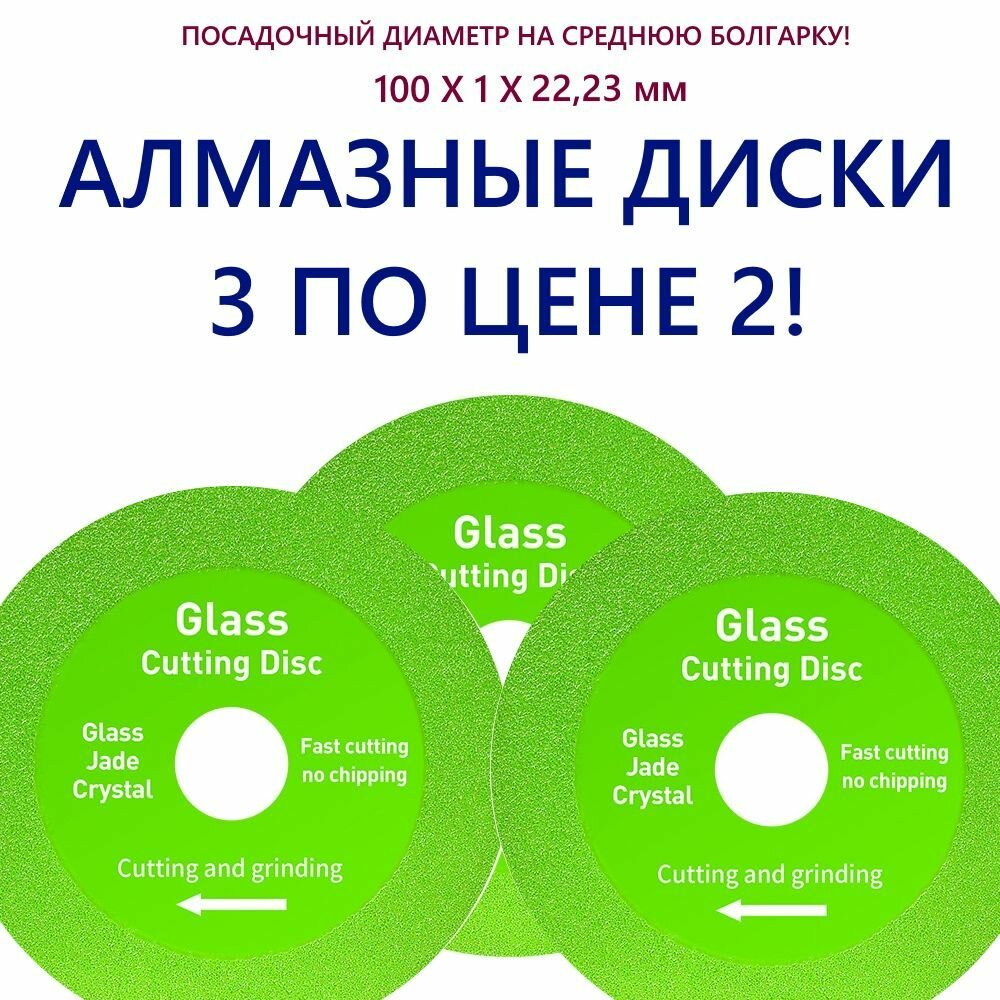 3 диска отрезных на стандартную болгарку для резки стекла и керамической плитки 100 x 1 x 22,23 информация: