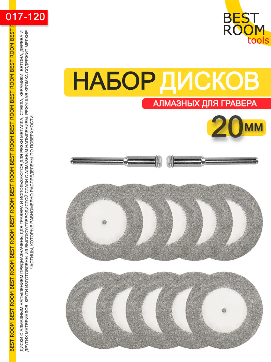 Алмазный диск для гравера 10 шт D20mm. и 2 штока 3 мм. Пильный круг с алмазным напылением. информация: