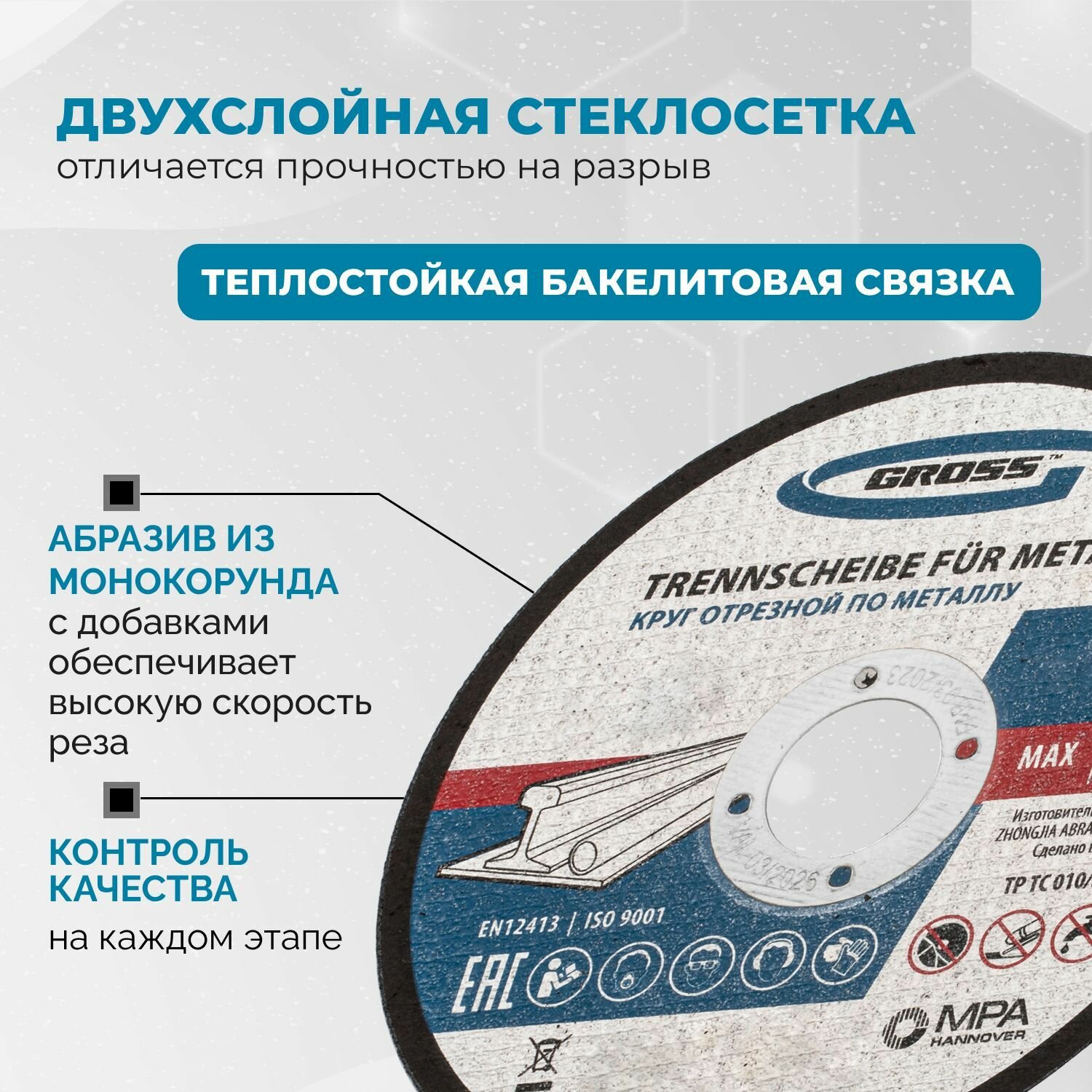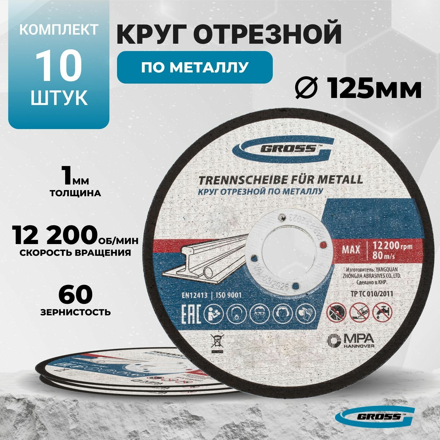Набор отрезных кругов по металлу, 125 х 1 х 22 мм Gross 10 штук информация: